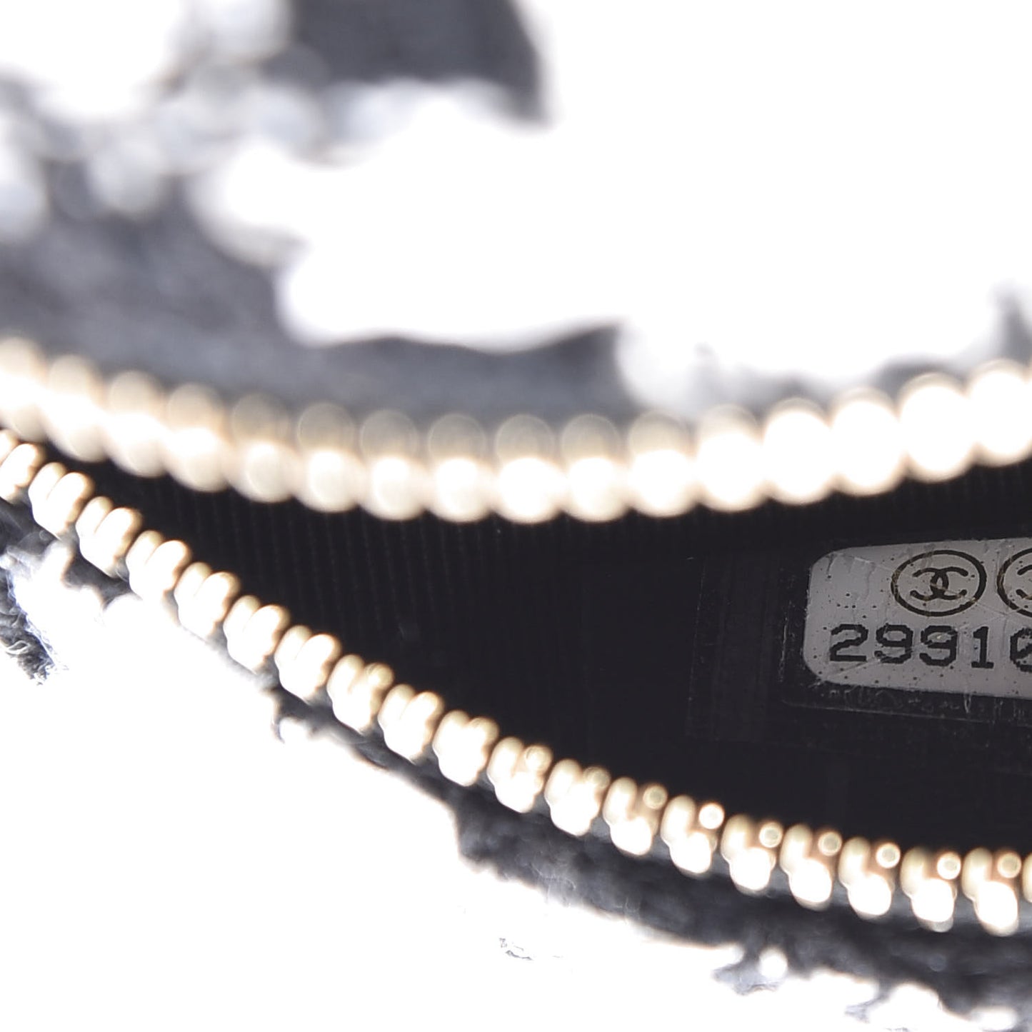 This is an authentic CHANEL Tweed Quilted Round Clutch With Chain in Black Ecru and White. This stylish crossbody bag is crafted of luxurious tweed in black and white. The bag features a light gold chain link leather threaded shoulder strap and a light gold Chanel CC logo on the front. This shoulder bag opens with a top zipper to a black fabric interior with a patch pocket. This is a stunning shoulder bag, ideal for day or evening, from Chanel!Follow this item for alerts. Chanel is a registered trademark of Chanel. FASHIONPHILE is not affiliated with Chanel.