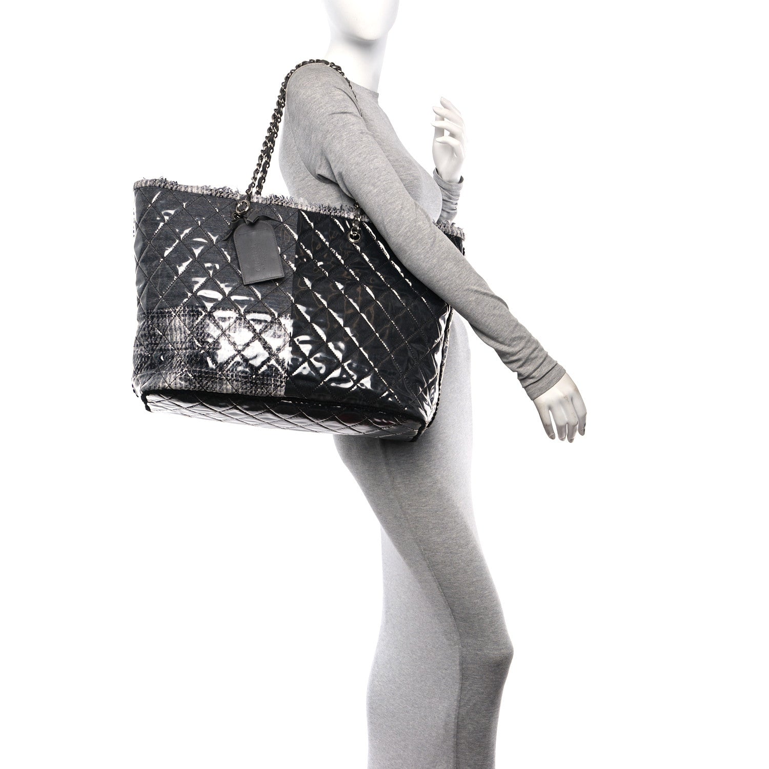 Chanel/ Bags/ Shoulder Bags /Chanel Vinyl Funny Tweed Patchwork Tote Grey