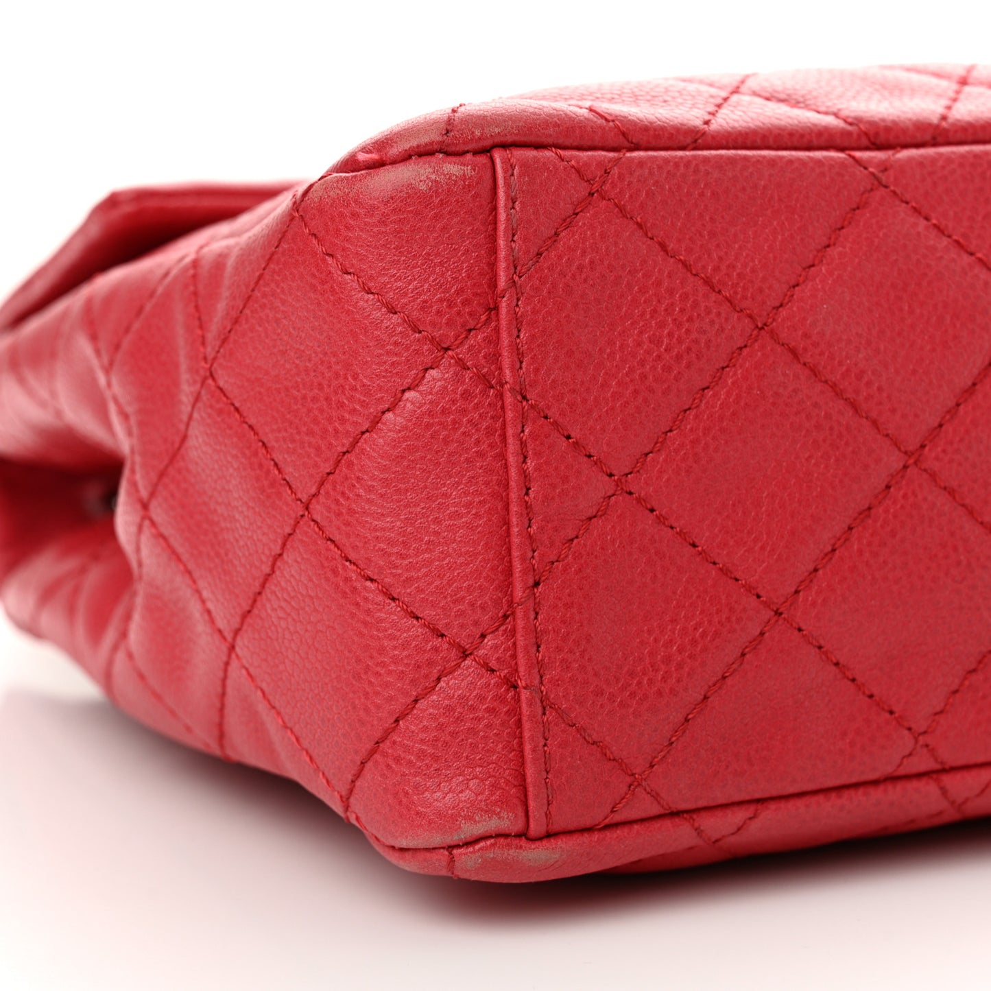 This is an authentic CHANEL Washed Caviar Quilted Maxi Single Flap in Fuchsia. This chic shoulder bag is crafted of diamond quilted caviar leather in red. It features an external flat pocket, a leather threaded silver chain link shoulder strap, and a matching Chanel CC turn lock on the front flap. The bag opens to a leather interior with pockets.Follow this item for alerts. Chanel is a registered trademark of Chanel. FASHIONPHILE is not affiliated with Chanel.