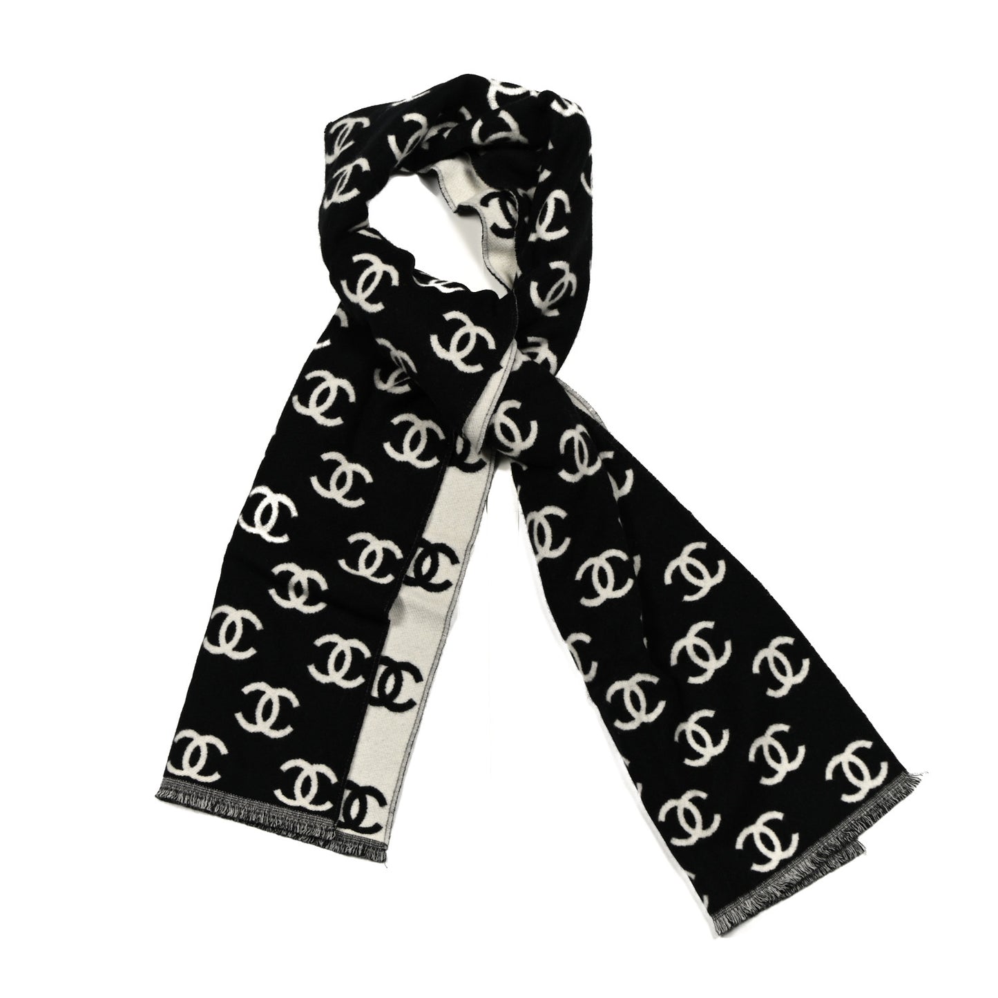 Chanel/ Accessories/ Scarves /Chanel Wool Cashmere CC Scarf Black White