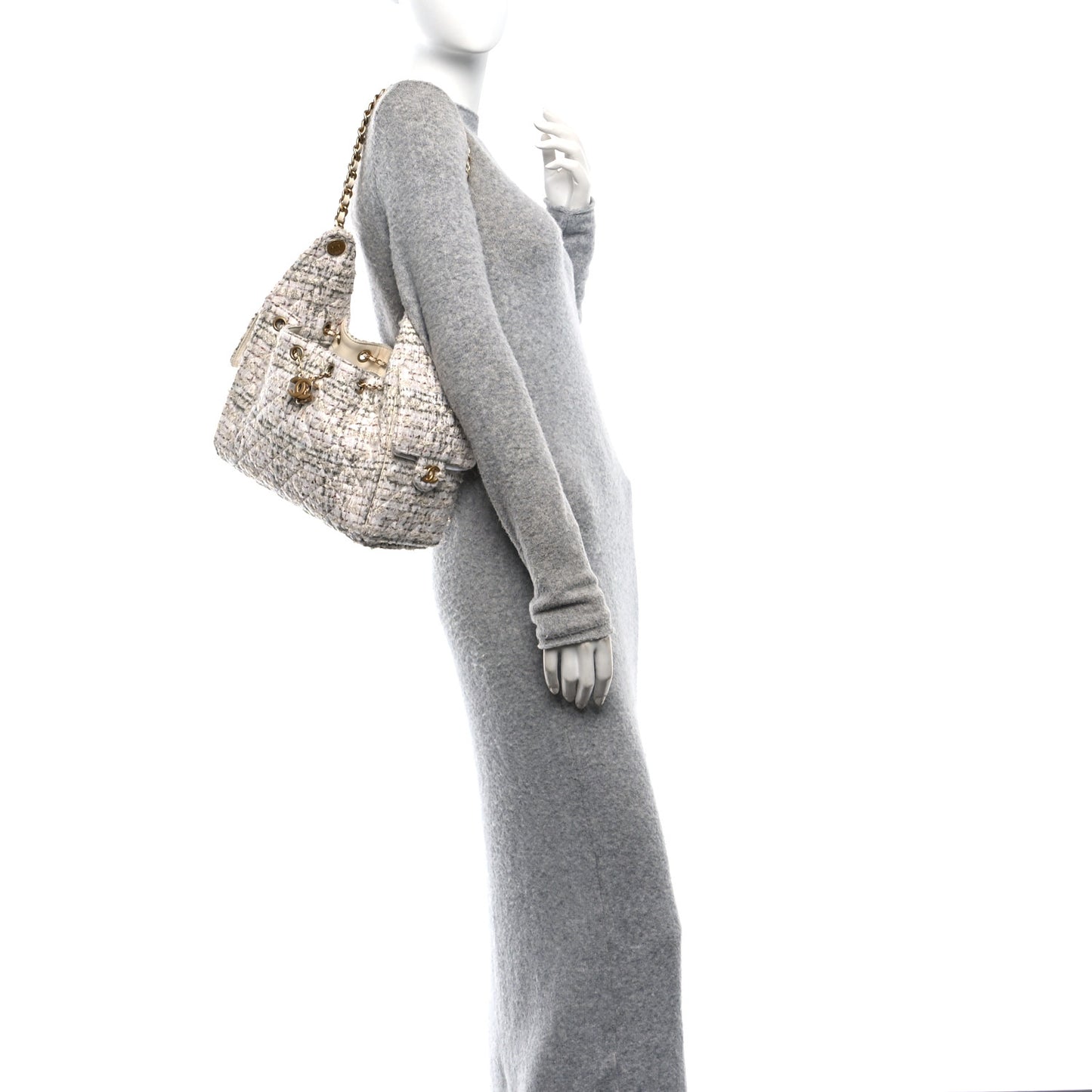 This is an authentic CHANEL Wool Tweed Small Chanel 25 Handbag in Ecru, Gold, Red, Khaki, and Multicolor. This chic shoulder bag is crafted of quilted woven tweed in white with red, gold, and khaki accents with a sequin detail. It features a white leather threaded gold chain shoulder strap, two side pockets, and gold hardware. The top opens to a light grey fabric interior with a patch pocket.Follow this item for alerts. Chanel is a registered trademark of Chanel. FASHIONPHILE is not affiliated with Chanel.