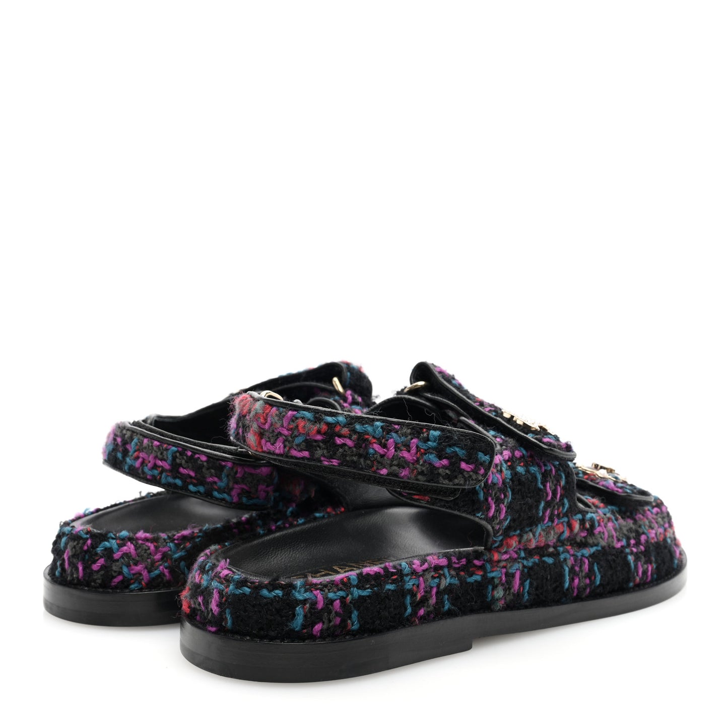 Chanel/ Accessories/ Shoes /Chanel Wool Tweed Velcro Dad Sandals 39.5 Black Purple Green Red
