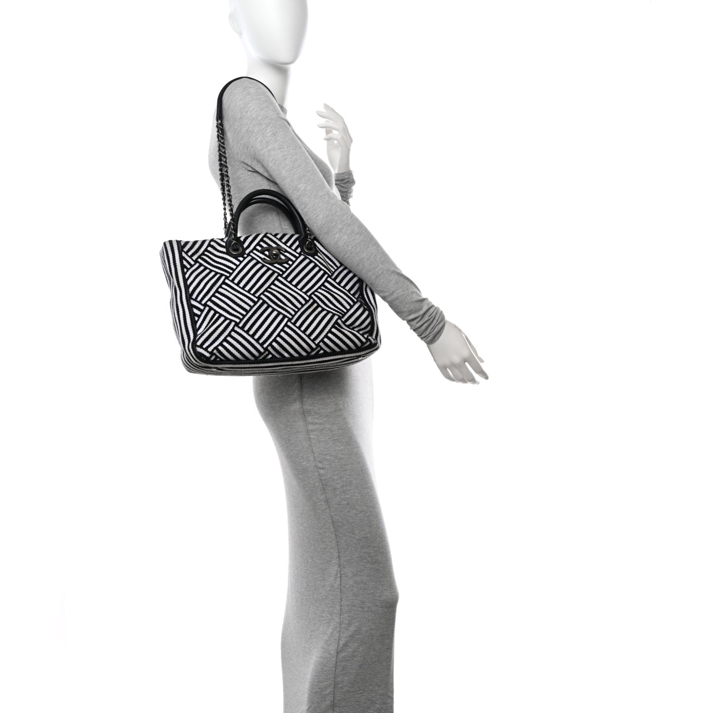 Chanel/ Bags/ Totes /Chanel Woven Canvas Large Easy Shopping Tote Black White