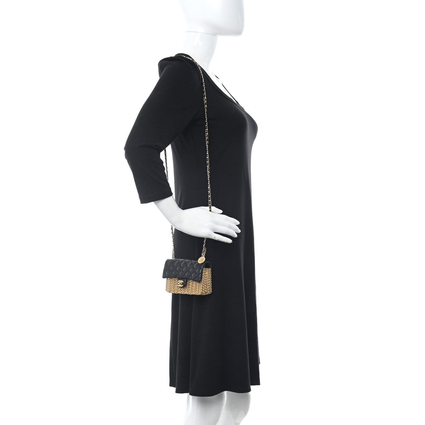 Chanel/ Bags/ Shoulder Bags /Chanel Woven Metal Lambskin Quilted Small Flap Black Gold