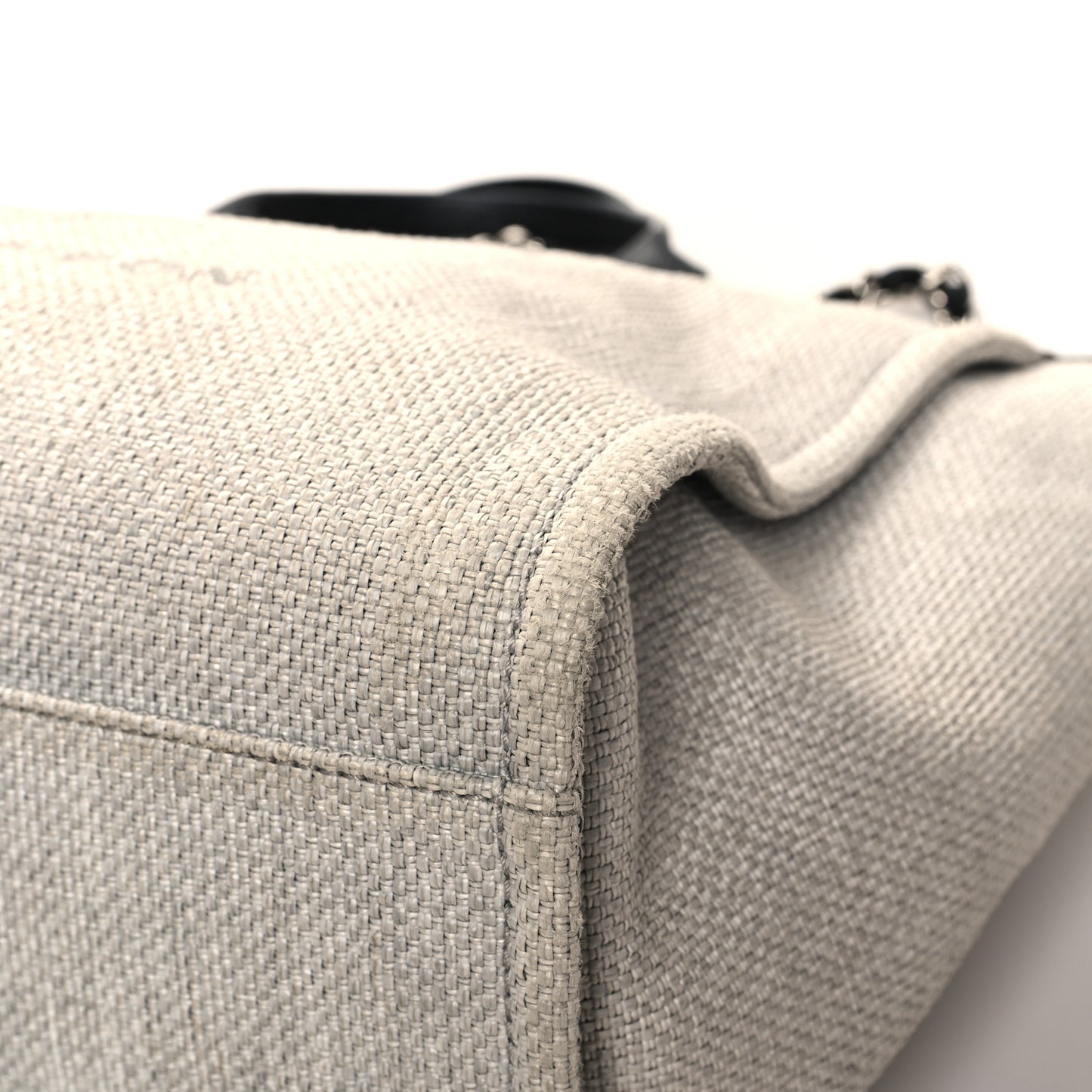 This is an authentic CHANEL Woven Straw Raffia Medium Deauville Tote in Grey. This stylish tote is crafted of woven grey raffia with black fabric trim and a stitched grey Chanel logo on the front. The bag features black leather top handles and black fabric-threaded silver chainlink shoulder straps. The top is open to a black fabric interior with zipper and patch pockets.Follow this item for alerts. Chanel is a registered trademark of Chanel. FASHIONPHILE is not affiliated with Chanel.