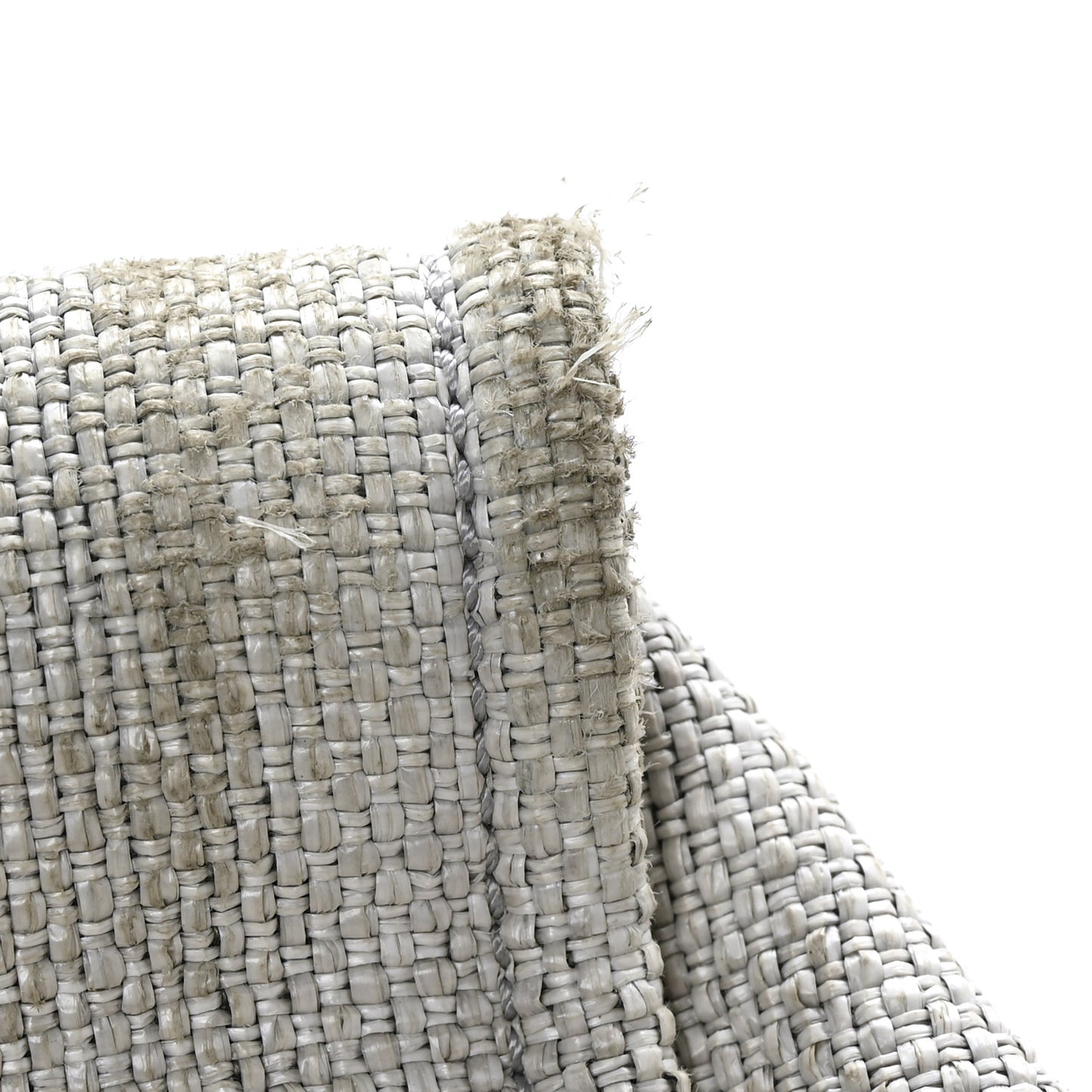 This is an authentic CHANEL Woven Straw Raffia Small Deauville Tote in Grey. This lovely woven light grey tote is crafted of fine raffia with an iconic Chanel logo. The bag features canvas threaded silver chain shoulder straps with leather shoulder pads and grey canvas trim. The top opens to a black fabric interior with zipper and patch pockets.