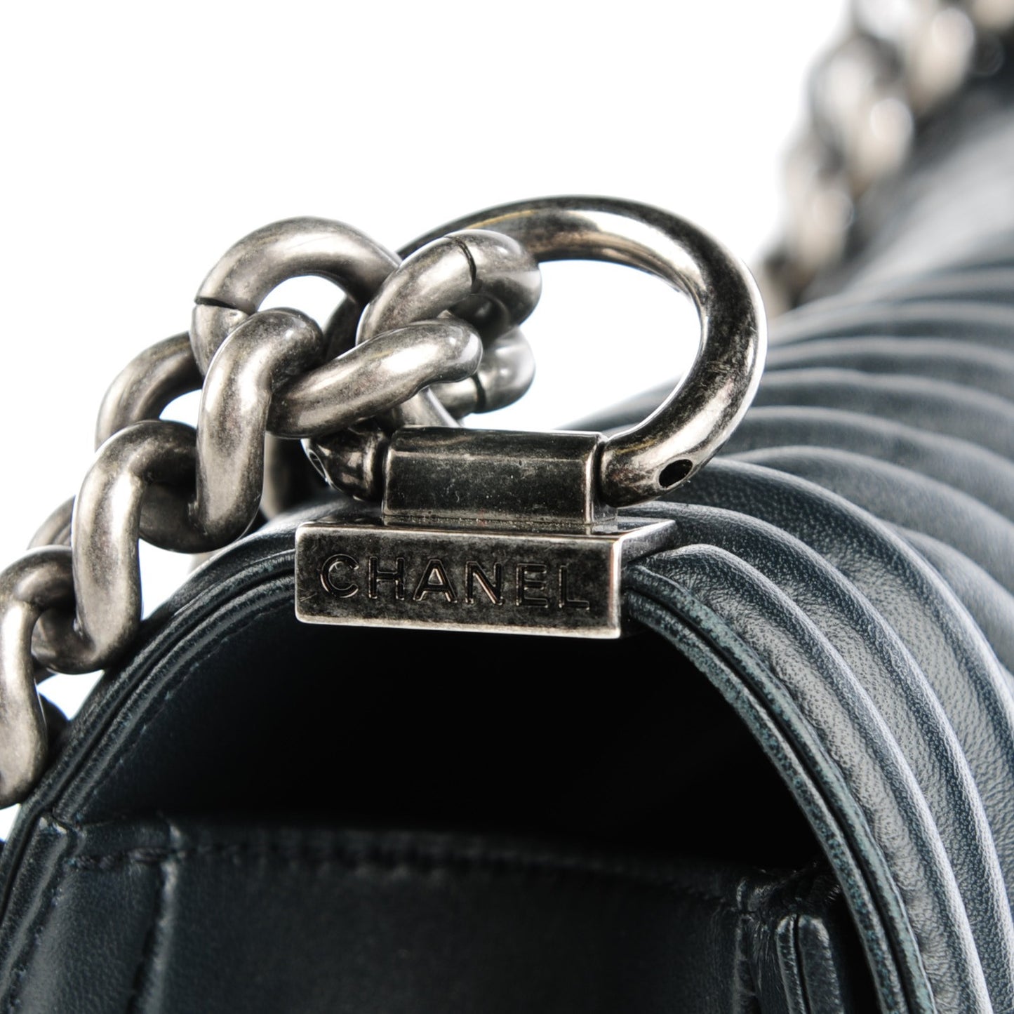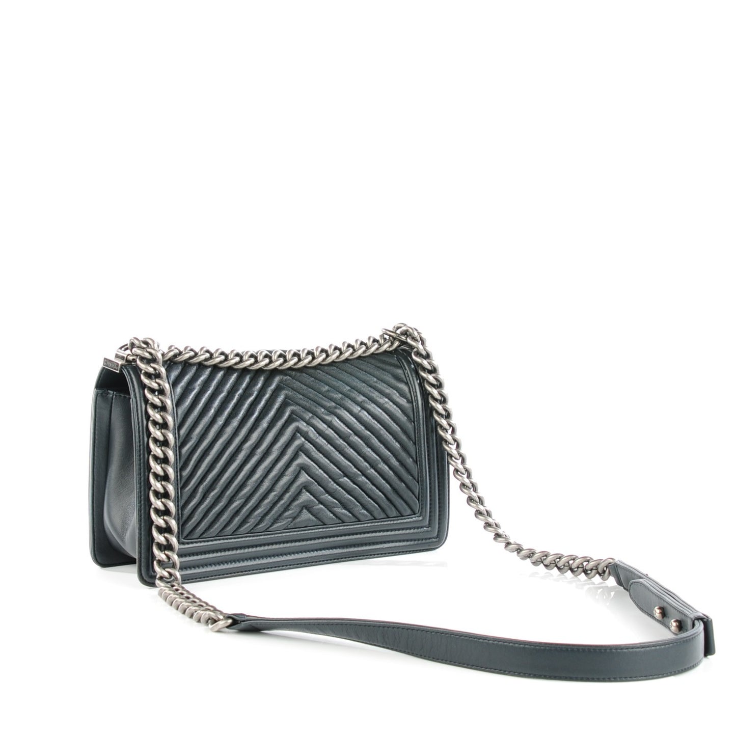 Chanel/ Bags/ Shoulder Bags /Chanel Wrinkled Lambskin Chevron Quilted Medium Boy Flap Navy