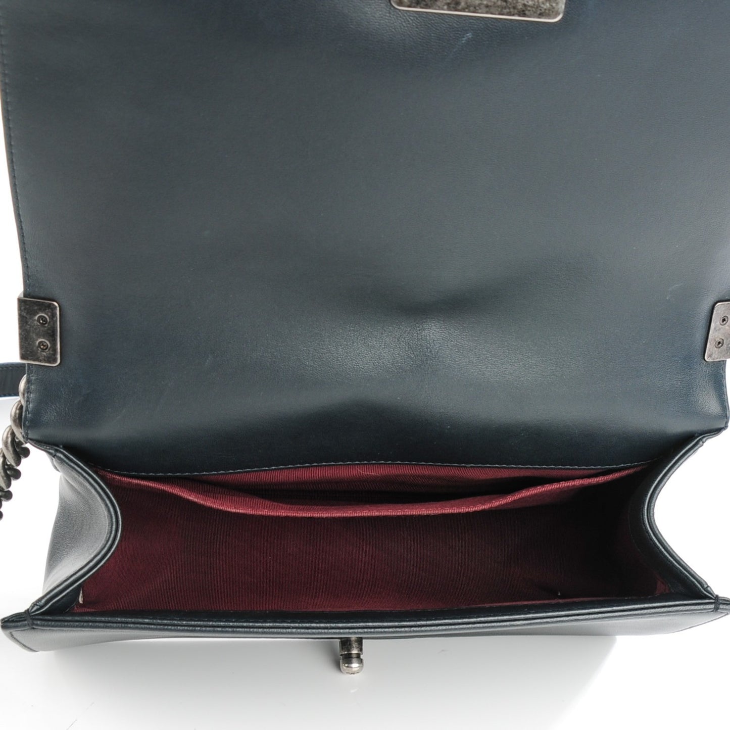Wrinkled Lambskin Chevron Quilted Medium Boy Flap Navy