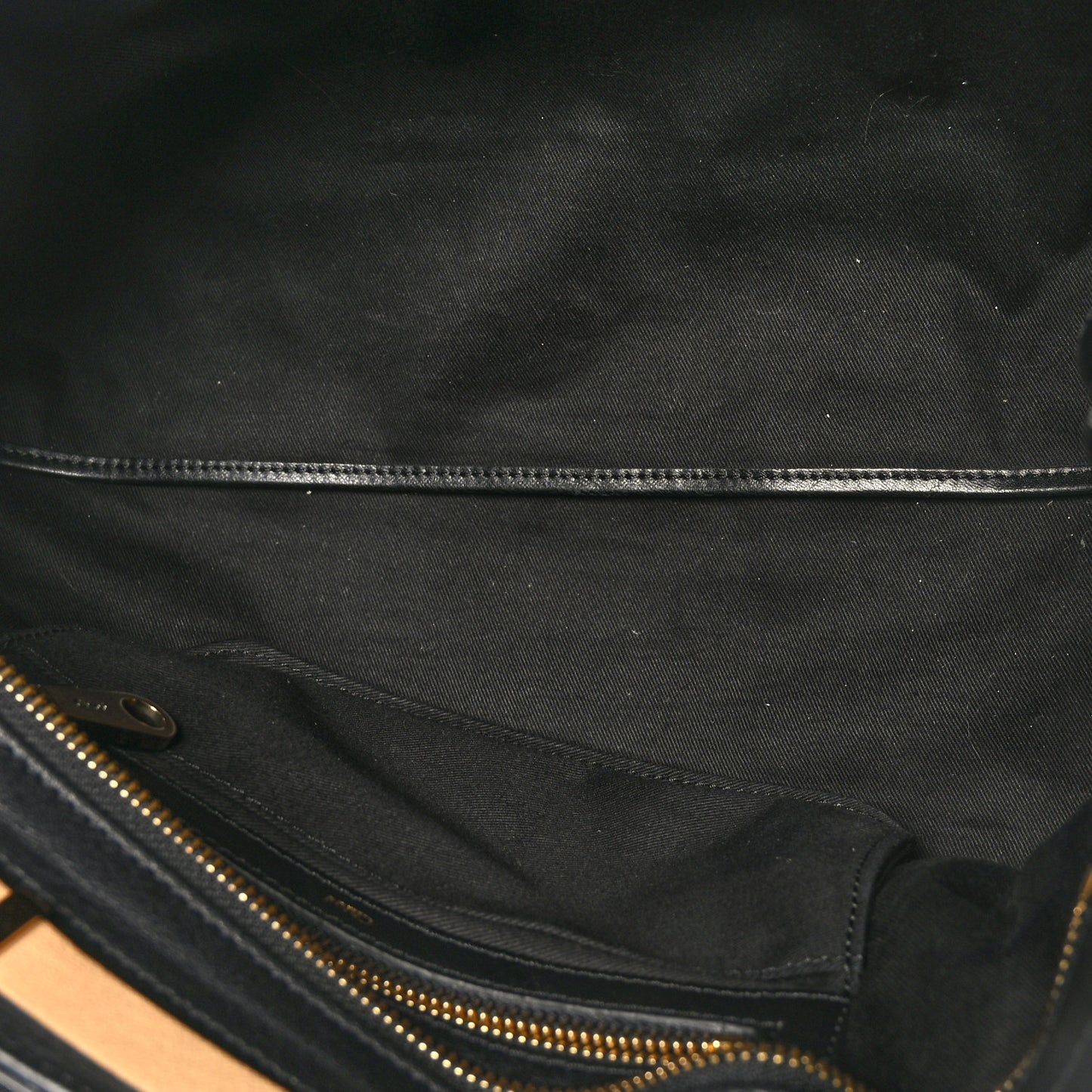 This is an authentic CHLOE Calfskin Alice Satchel Ivy Jungle in Beige and Black. This stylish tote is crafted of calfskin leather in beige with an extensive black leather trim. The bag features black rolled leather top handles, an optional shoulder strap, and a top crest. The top zipper opens to a black fabric interior with a patch pocket.