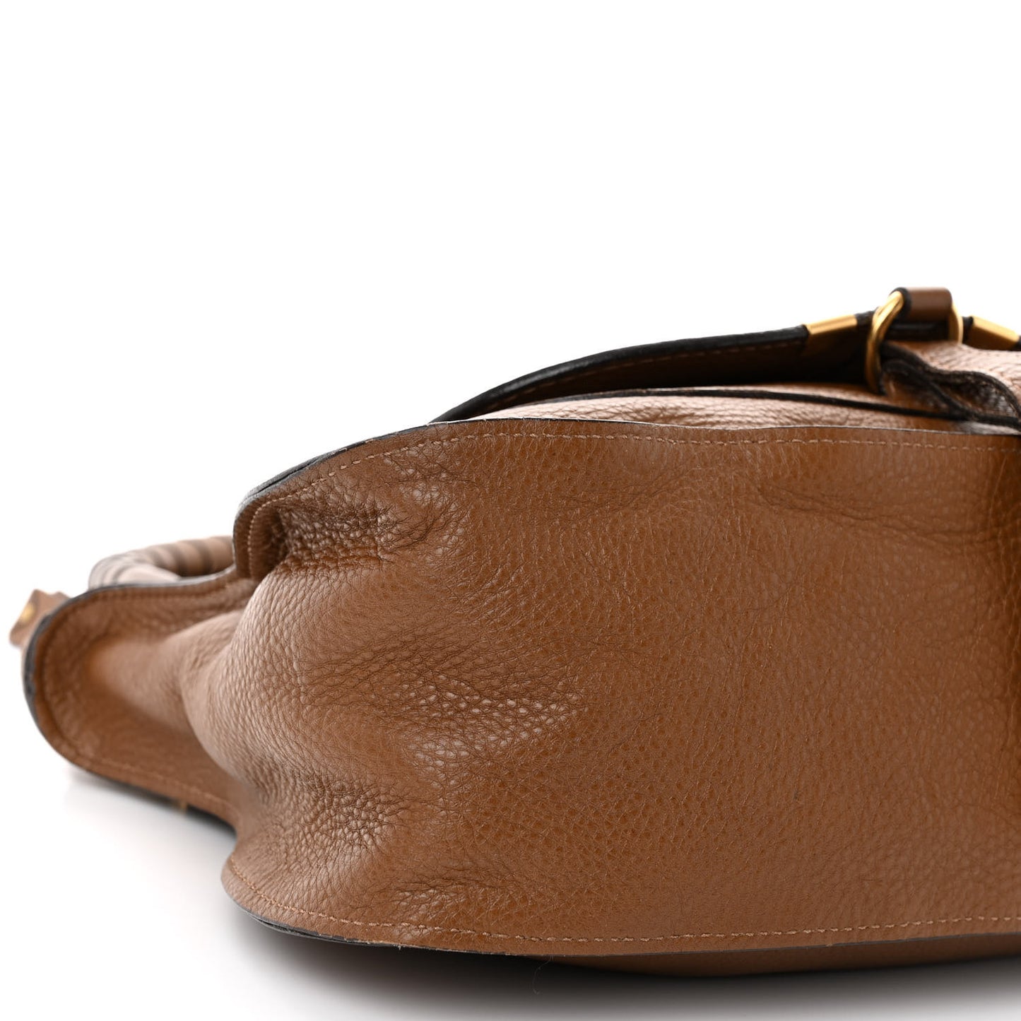 This is an authentic CHLOE Calfskin Medium Marcie Satchel in Tan. This satchel is crafted of textured calfskin leather in brown. The bag features wrapped leather shoulder straps, an optional shoulder strap, a front flap pocket, and matte gold hardware. The top zipper opens to a beige fabric interior with a zipper pocket.Follow this item for alerts. Chloe is a registered trademark of Chloe. FASHIONPHILE is not affiliated with Chloe.