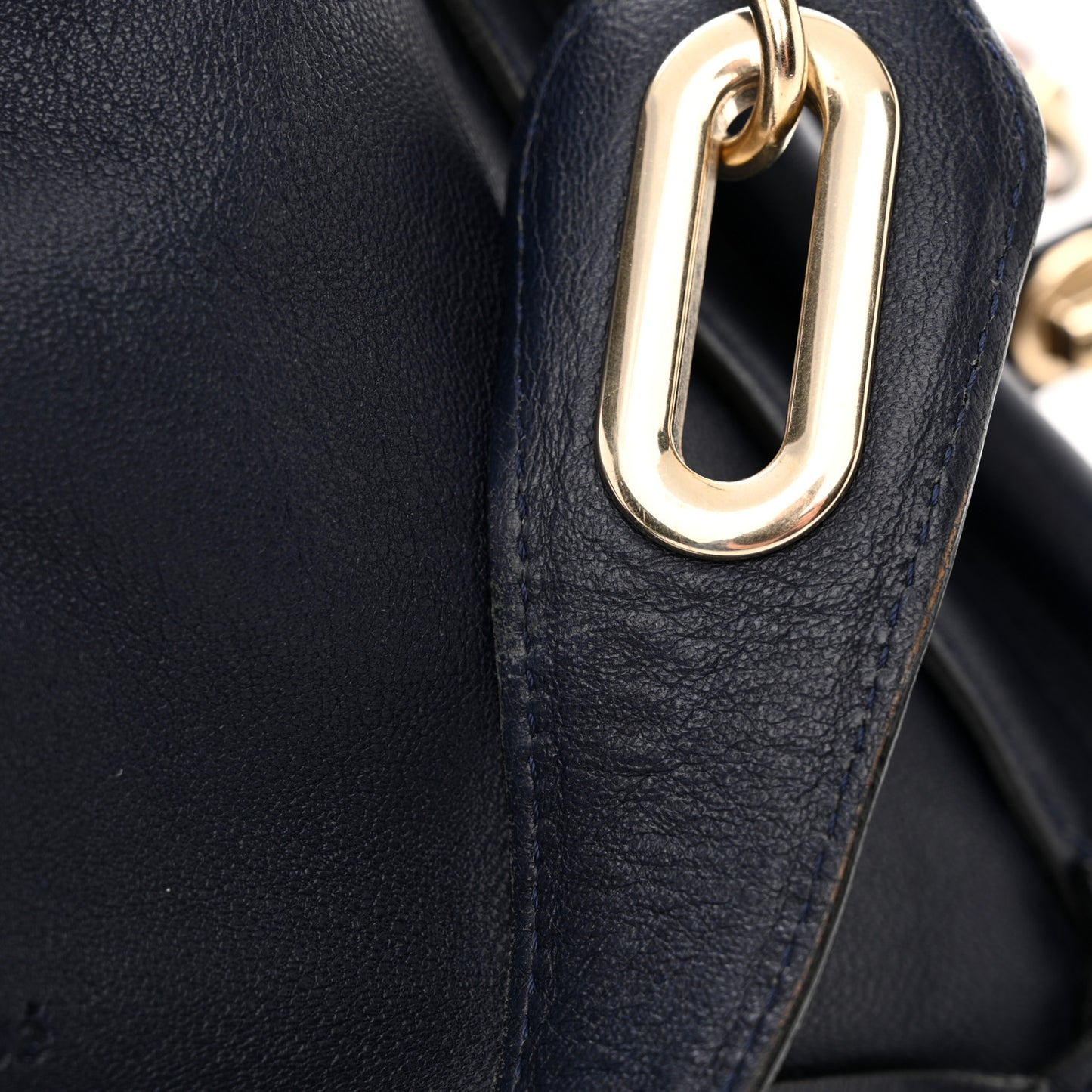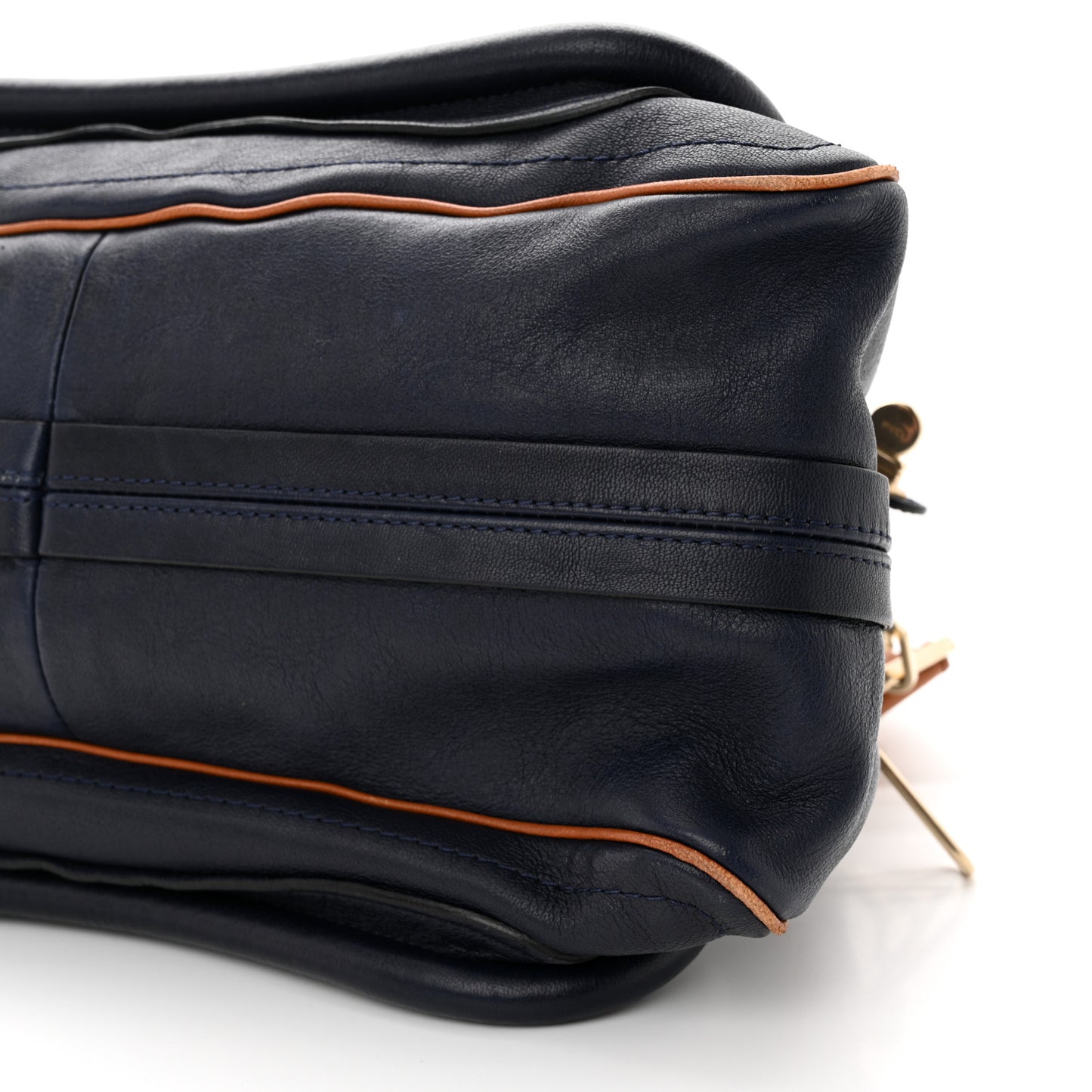 This is an authentic CHLOE Calfskin Medium Military Paraty in Blue. This stylish tote is crafted of luxuriously grained calfskin leather with ample leather trimming; two sturdy leather top handles and a very useful military shoulder strap. There is ample brass hardware to compliment the leather including handle links, rings and a sturdy top zipper. The interior is a beige textile with a zipper pocket. This is the perfect bag for day and entertaining and socializing by night, a versatile and a fabulous tote, only from Chloe!Follow this item for alerts. Chloe is a registered trademark of Chloe. FASHIONPHILE is not affiliated with Chloe.