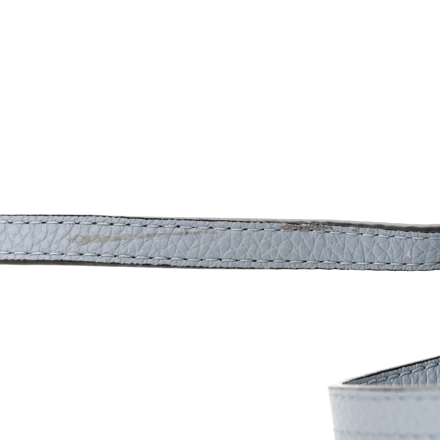 This is an authentic CHLOE Calfskin Nano Marcie Saddle Bag in Shady Blue. This chic messenger style bag is crafted of light blue grained calfskin leather. The bag features an adjustable leather cross body strap with brass hardware and a full front flap with decorative stitching that seals with a brass loop. This shoulder bag opens to a beige fabric interior with a patch pocket.Follow this item for alerts. Chloe is a registered trademark of Chloe. FASHIONPHILE is not affiliated with Chloe.