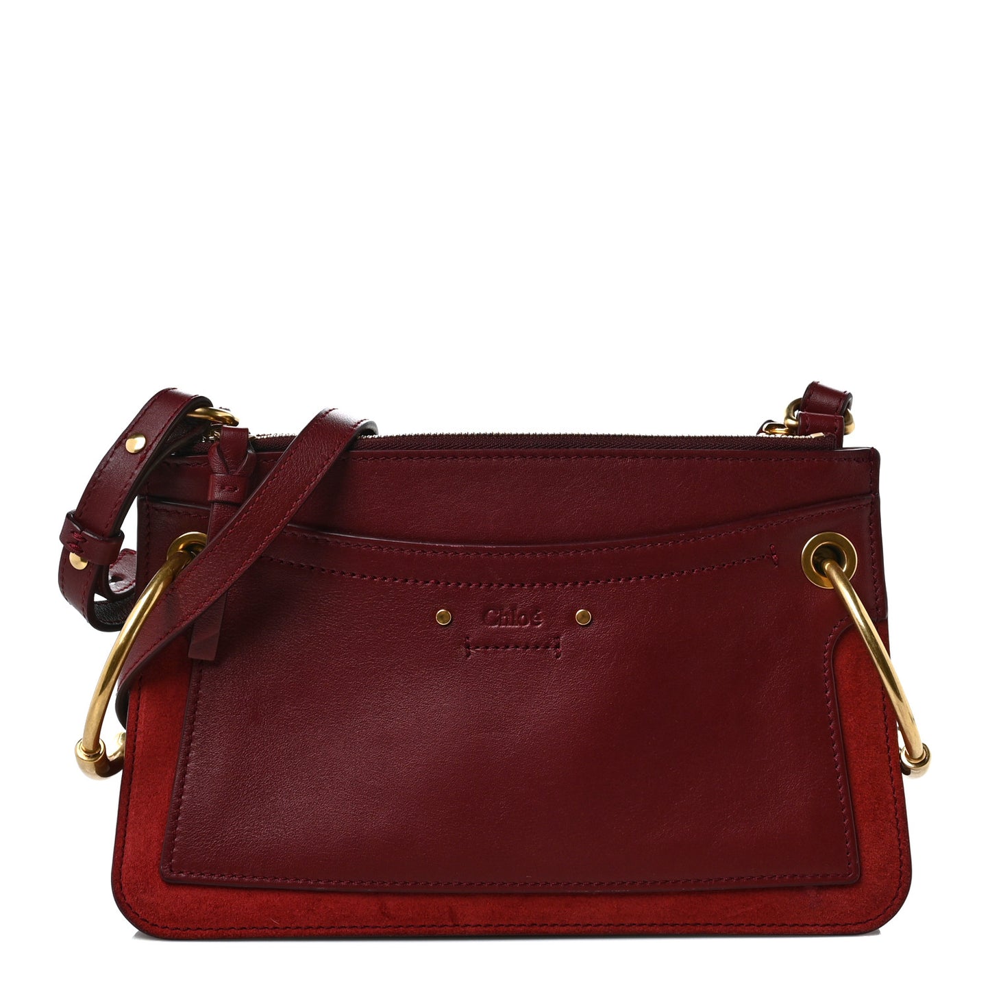 This is an authentic CHLOE Calfskin Suede Roy Bag in Plum Purple. This stylish handbag is crafted of smooth calfskin and suede leather in red. It features signature large rings on either side, a short carry strap in contrasting color, and a long leather adjustable shoulder strap. The top zipper opens to a spacious beige canvas fabric interior with zipper and patch pockets.Follow this item for alerts. Chloe is a registered trademark of Chloe. FASHIONPHILE is not affiliated with Chloe.