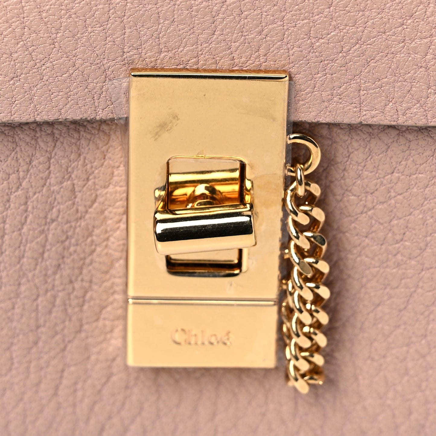 This is an authentic CHLOE Grained Lambskin Mini Drew Crossbody Backpack in Cement Pink. This stylish backpack is crafted of finely grained lambskin leather in pink. The bag has a polished bijoux gold chain and a facing flap with a gold turn lock. The flap opens to a beige suede interior with a hanging patch pocket.Follow this item for alerts. Chloe is a registered trademark of Chloe. FASHIONPHILE is not affiliated with Chloe.