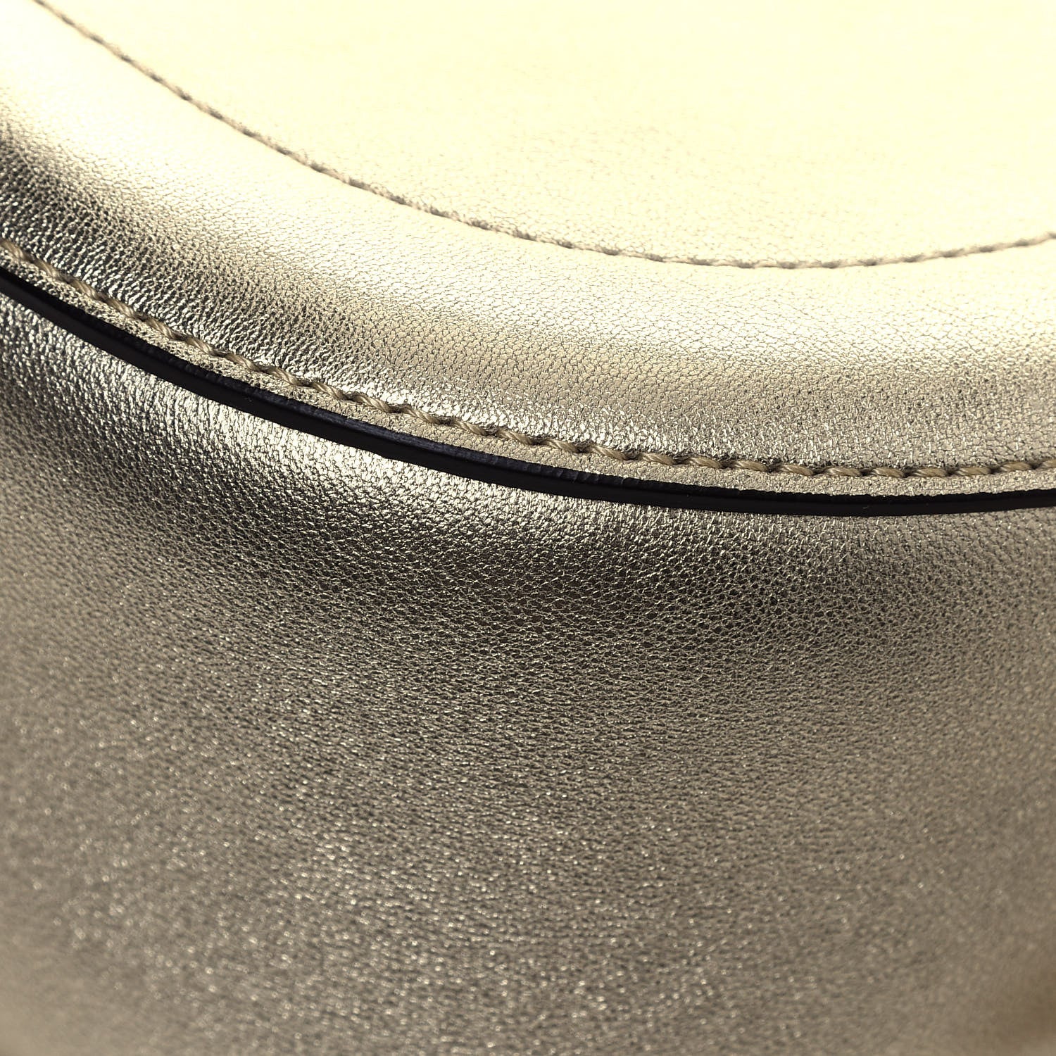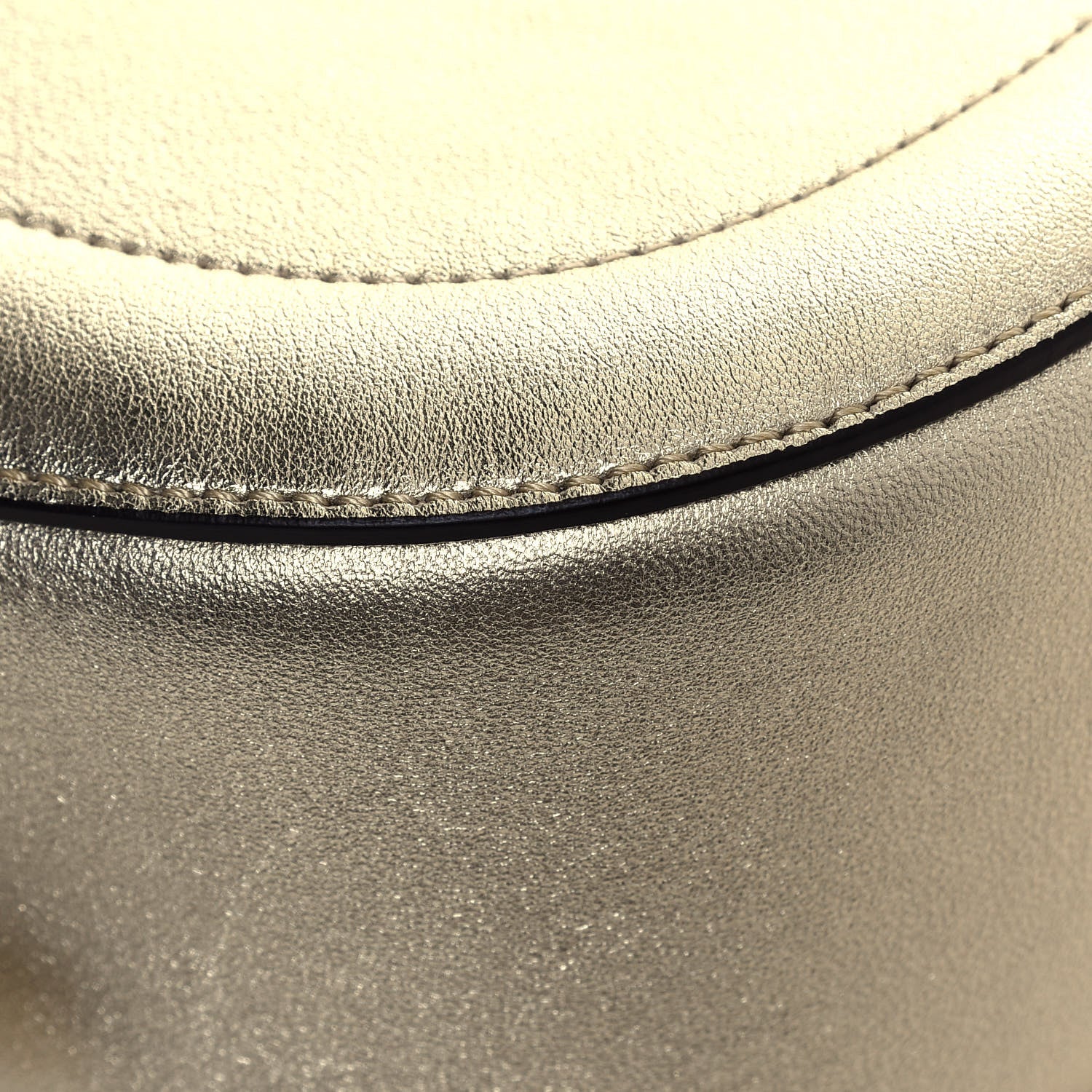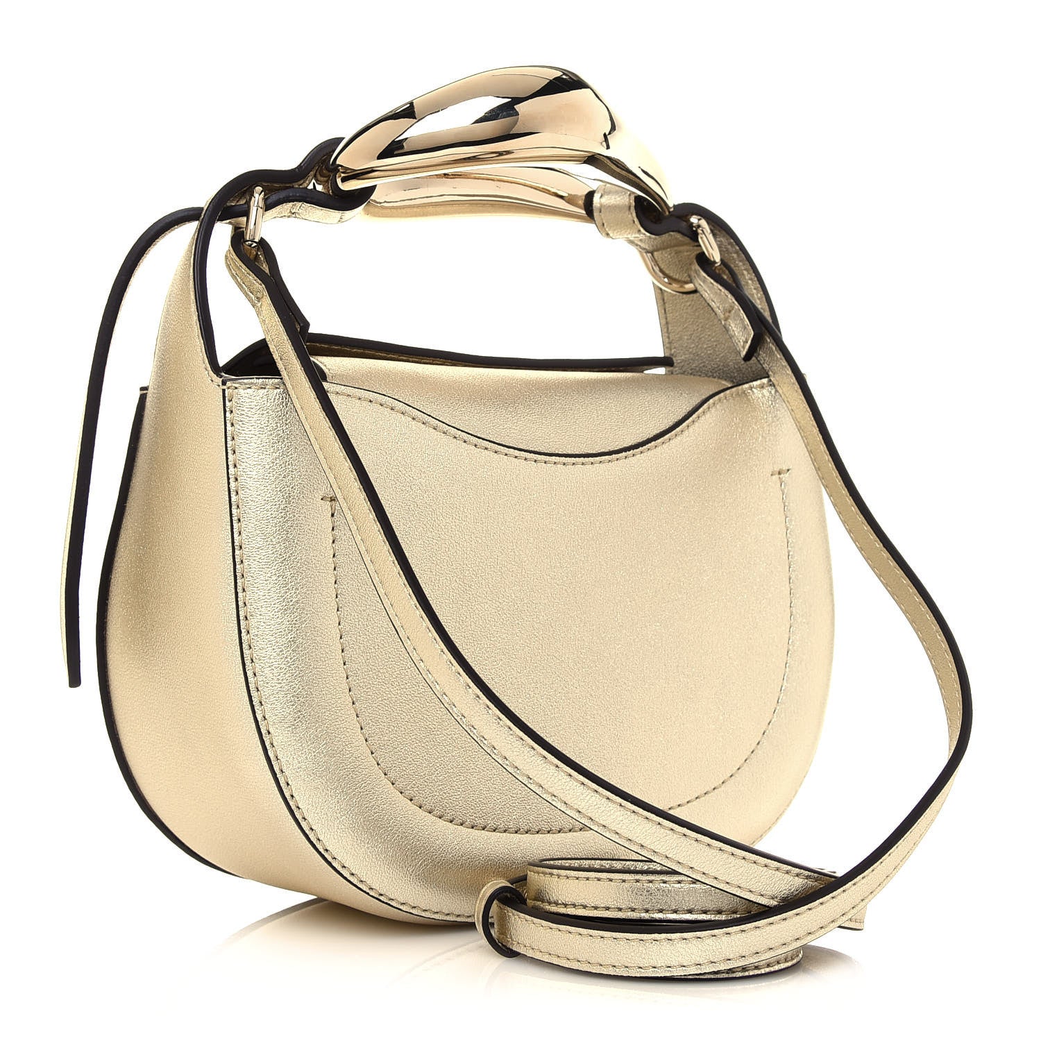 This is an authentic CHLOE Metallic Small Grain Calfskin Kiss Bag in Gold. This stylish crossbody is crafted of smooth grained calfskin leather. The bag features a long shoulder strap and a modern gold metal handle. It opens to a beige suede interior with a pocket.Follow this item for alerts. Chloe is a registered trademark of Chloe. FASHIONPHILE is not affiliated with Chloe.