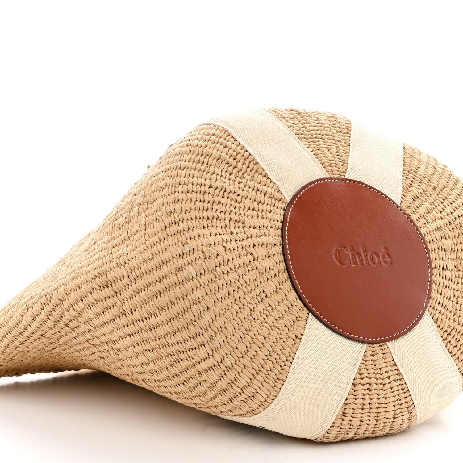 This is an authentic CHLOE Raffia Large Woody Tote in White. This chic basket bag is crafted of natural woven straw raffia. The shoulder bag features beige canvas shoulder straps with a leather shoulder pad. The top opens to a matching straw raffia interior.Follow this item for alerts. Chloe is a registered trademark of Chloe. FASHIONPHILE is not affiliated with Chloe.