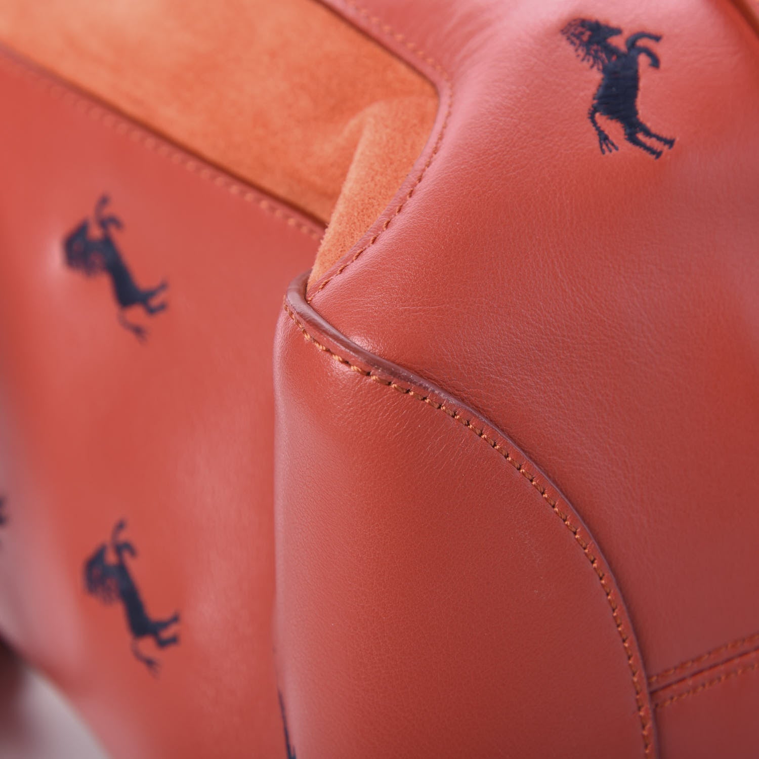 Smooth Calfskin Little Horses Embroidered Tao Zipped Tote Earthy Red