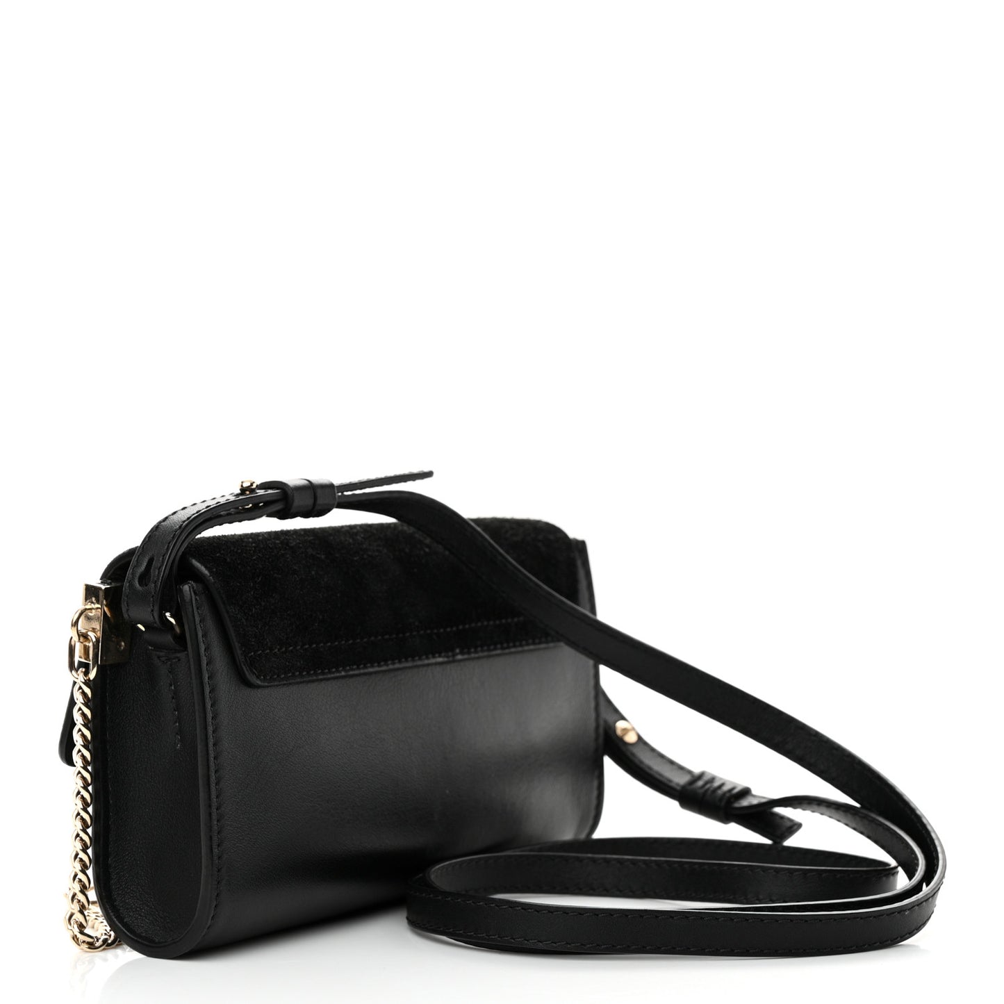 This is an authentic CHLOE Suede Calfskin Mini Faye Shoulder Bag in Black. This stylish shoulder bag is crafted of fine calfskin and suede leather in black. This professional looking bag features a suede front flap, a long leather shoulder strap and polished gold hardware. The flap opens with a magnetic button clasp to a beige suede interior which features hanging card slots.Follow this item for alerts. Chloe is a registered trademark of Chloe. FASHIONPHILE is not affiliated with Chloe.