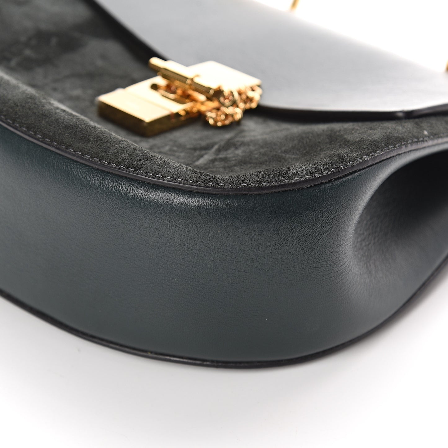 Chloe/ Bags/ Shoulder Bags /Chloe Suede Smooth Calfskin Drew Shoulder Bag Intense Green