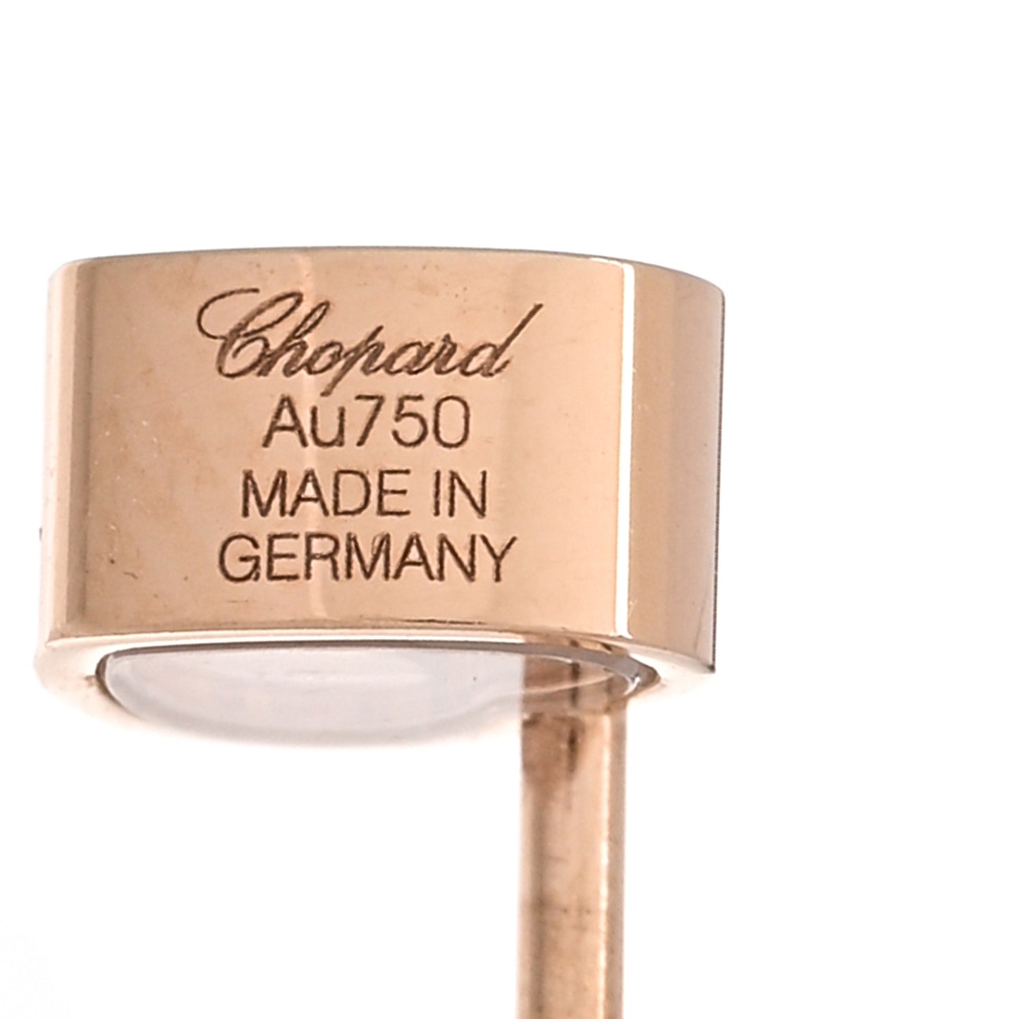 These are authentic CHOPARD 18K Rose Gold Diamond Mother of Pearl Floating Happy Hearts Drop Earrings. The earrings are crafted of 18 karat rose gold and feature a mother of pearl drop motif with a small floating diamond, approximately .10 total carat weight.Follow this item for alerts. Chopard is a registered trademark of Chopard. FASHIONPHILE is not affiliated with Chopard.