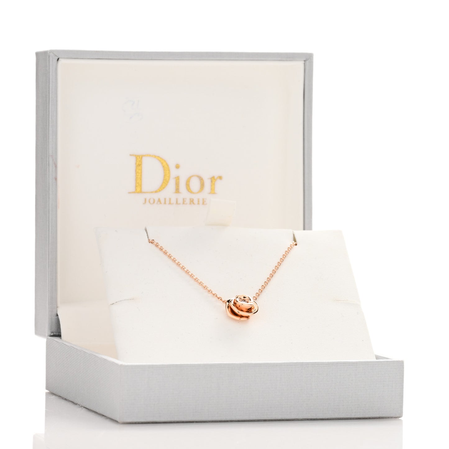 This is an authentic CHRISTIAN DIOR 18K Rose Gold Diamond Small Rose Couture Necklace. The necklace is crafted of 18 karat rose gold and features a flower motif with and a single round brilliant cut diamond, approximately .01 carat.Follow this item for alerts. Christian Dior is a registered trademark of Christian Dior. FASHIONPHILE is not affiliated with Christian Dior.