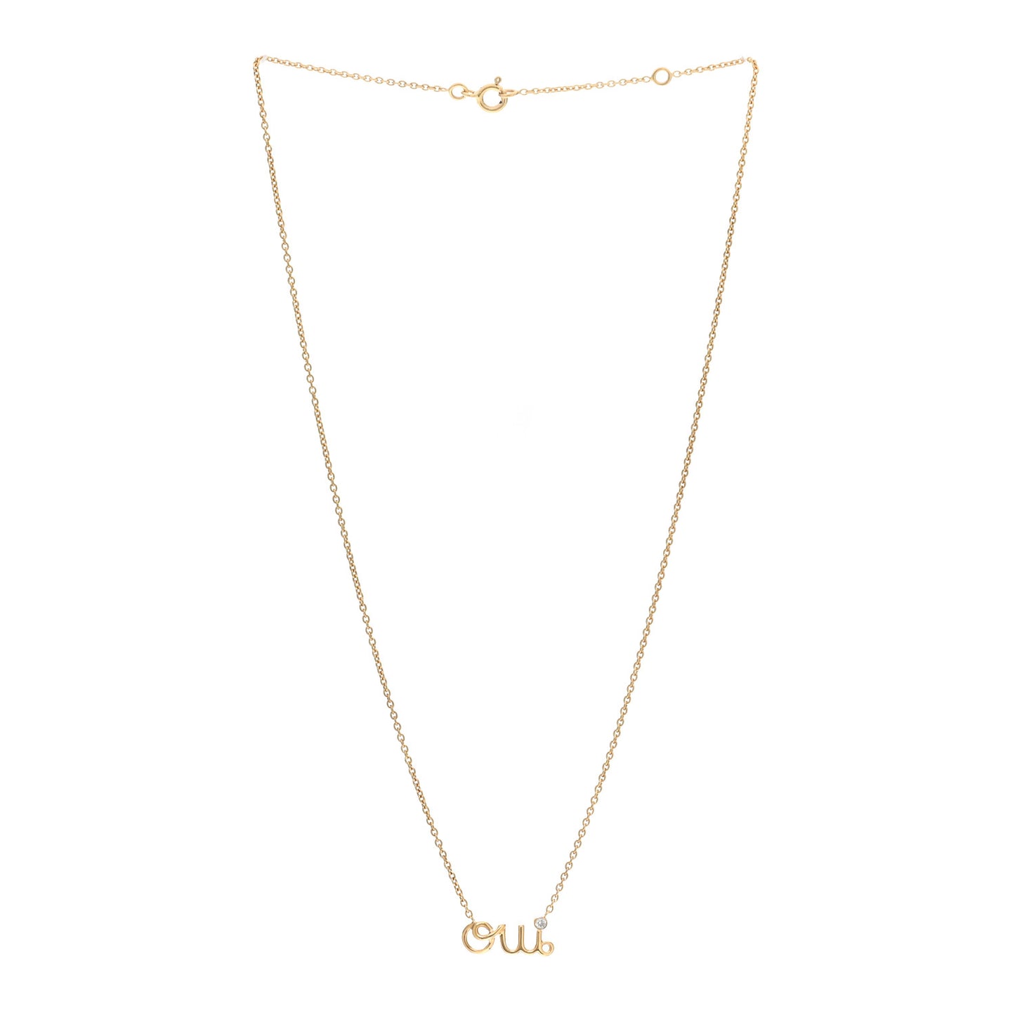 18K Yellow Gold Diamond Oui Pendant Necklace
