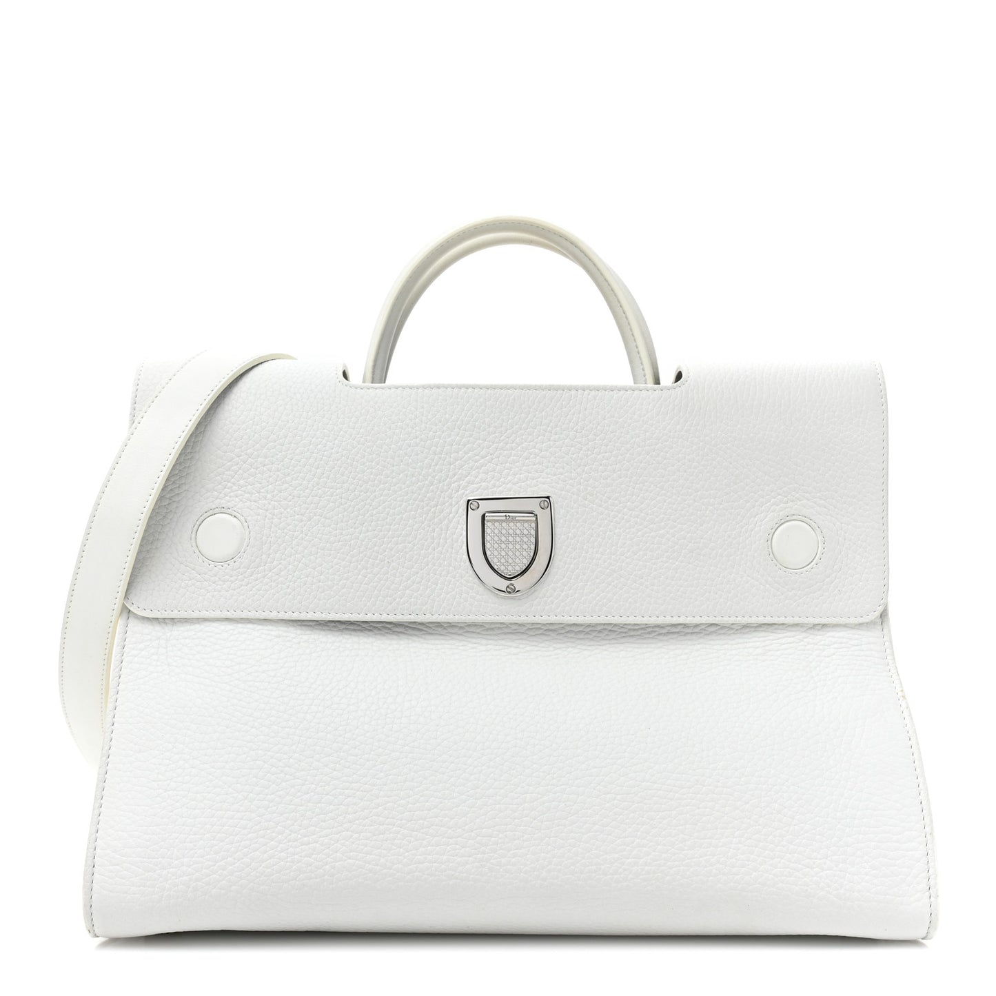 This authentic CHRISTIAN DIOR Bullcalf Medium Diorever Flap in White. This chic handbag is composed of bull calf leather in white. This handbag features rolled leather top handles, shoulder strap and silver hardware. The facing flap opens with a textured press lock to a lovely matching leather interior with flat pockets. This bag is perfect for any occasion, by Dior.Follow this item for alerts. Christian Dior is a registered trademark of Christian Dior. FASHIONPHILE is not affiliated with Christian Dior.