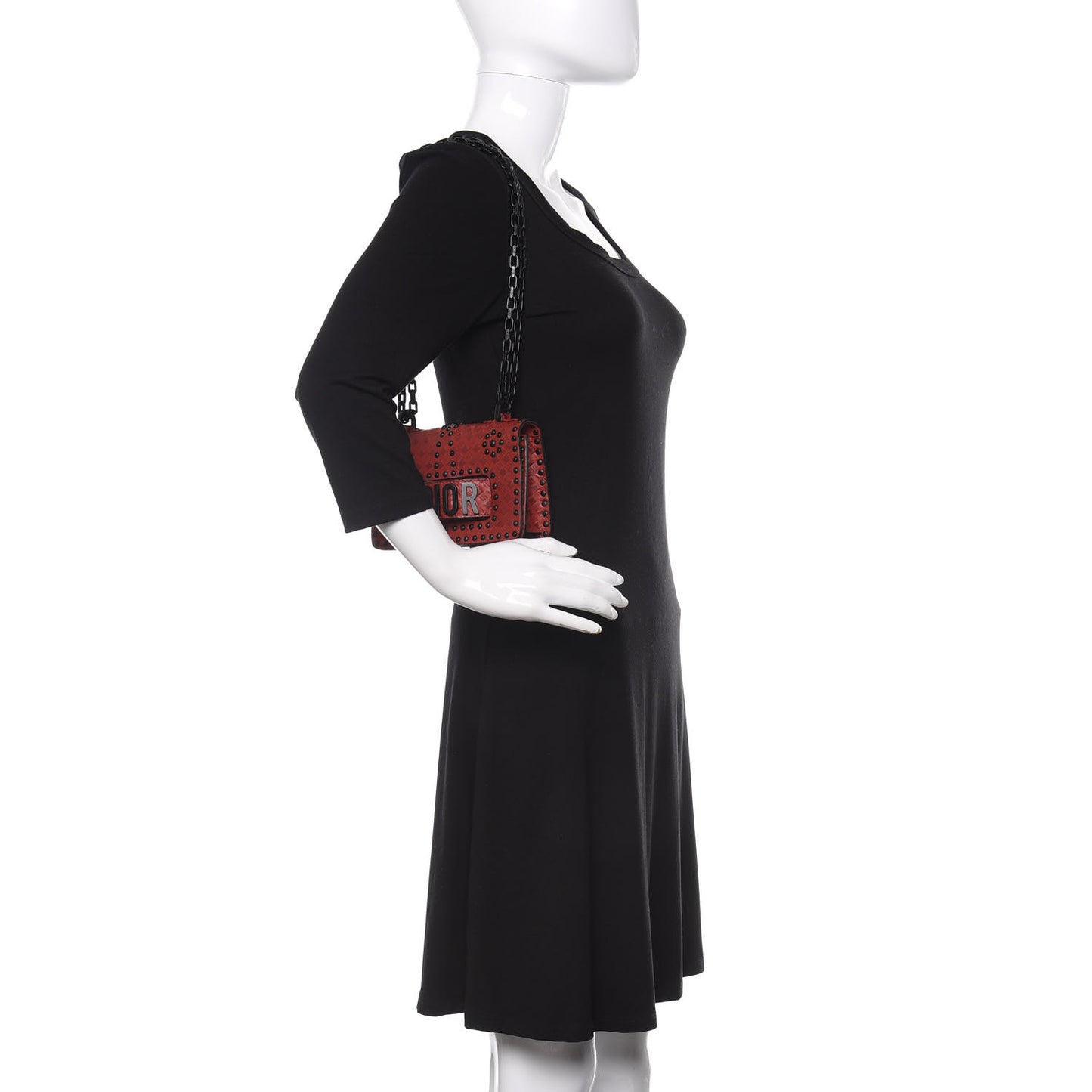 Christian Dior/ Bags/ Shoulder Bags /Christian Dior Calfskin Embossed Cannage Studded Mini J'Adior Chain Flap Bag Red