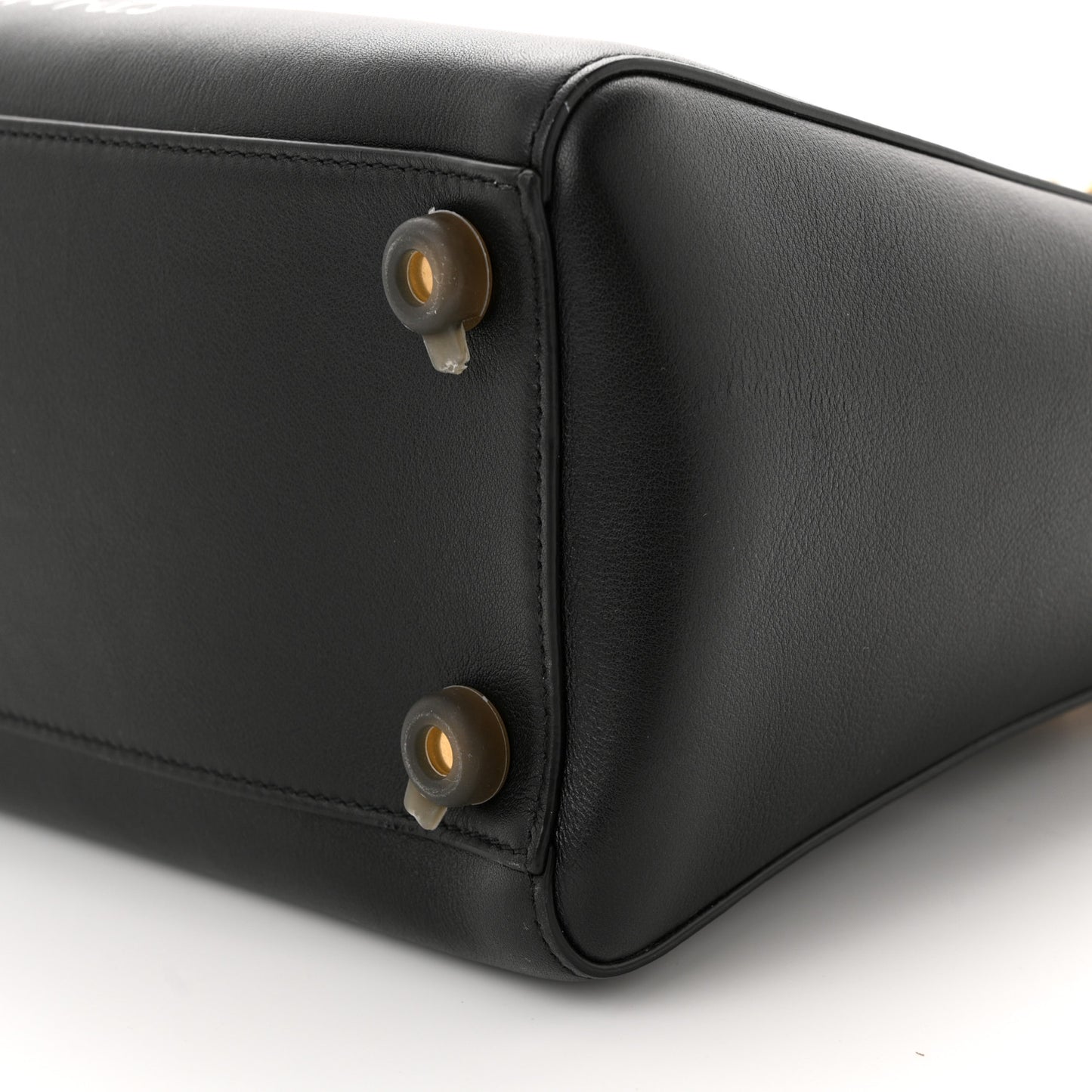This is an authentic CHRISTIAN DIOR Calfskin Hand Painted Swords Medium Lady Dior in Black. This delightful tote is crafted of smooth calfskin leather in black. The bag features a painted image of swords in the shape of an inverted pentagram with a bee in the center in various yellows with the word "SWORDS" at the bottom . It has black rolled leather top handles, an optional leather shoulder strap, and aged brass hardware including a hanging "Dior" charm. The top is open to a black suede interior with zipper and patch pockets.