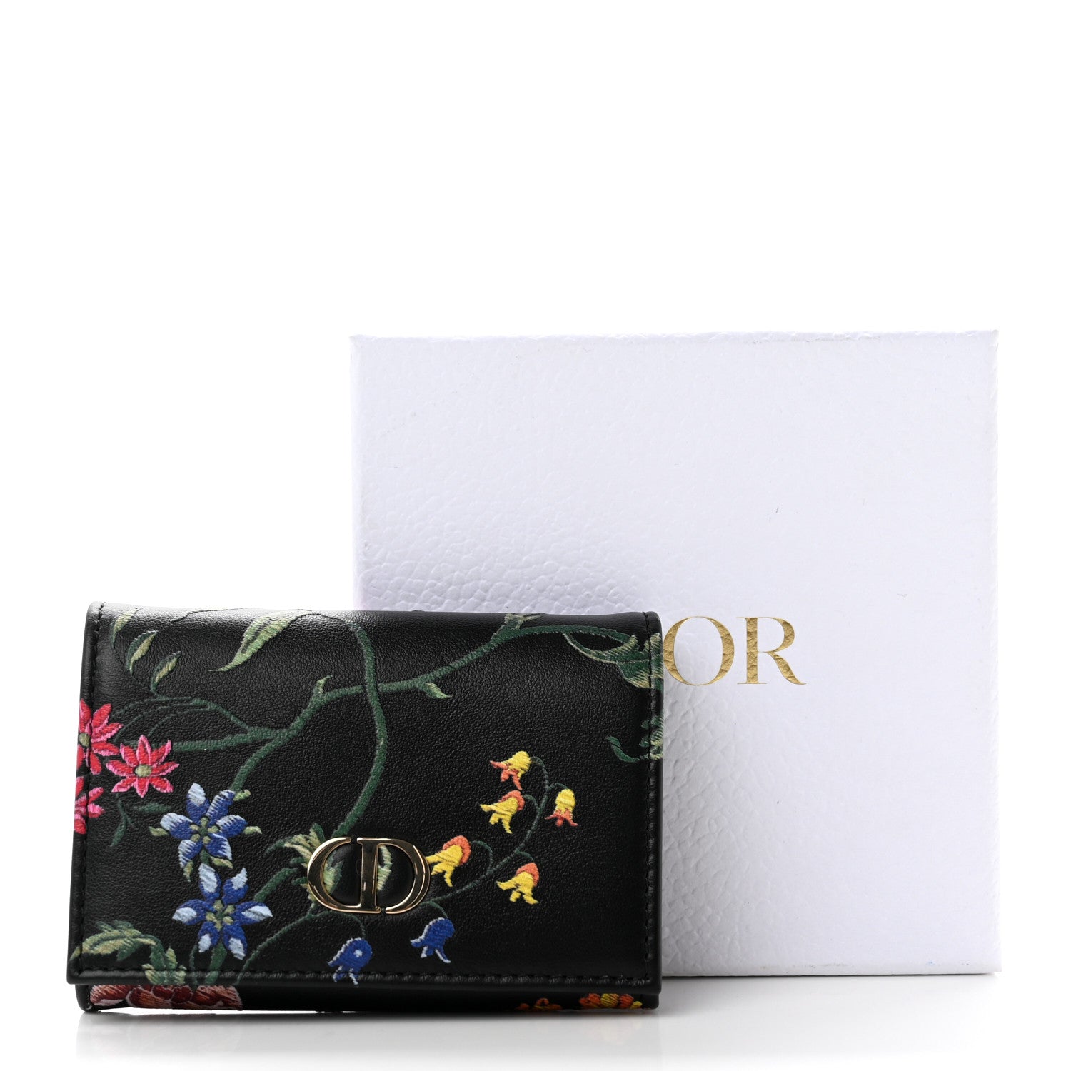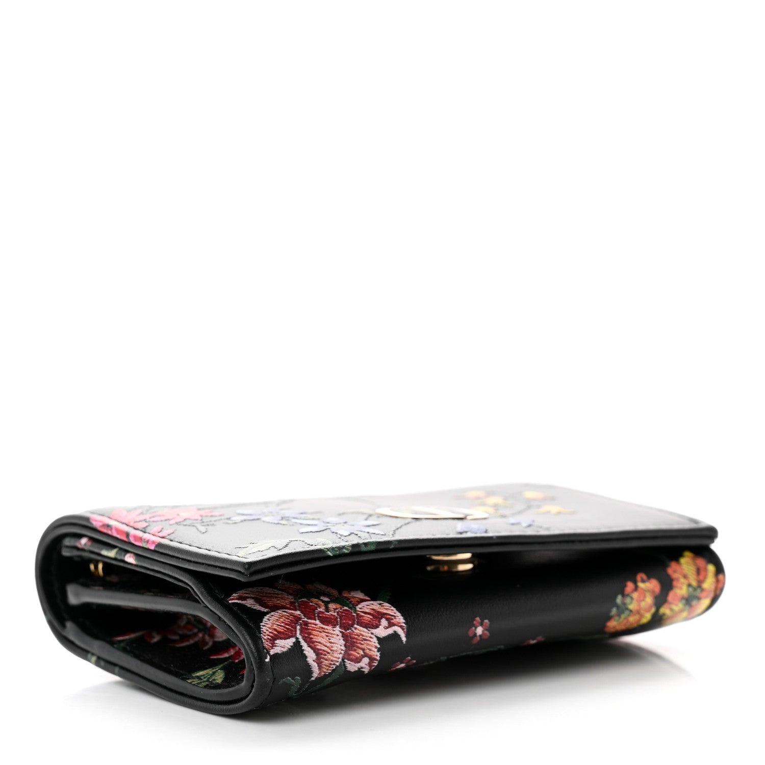 Christian Dior/ Accessories/ Wallets /Christian Dior Calfskin Petites Fleurs Print Caro XS Wallet Black Multicolor