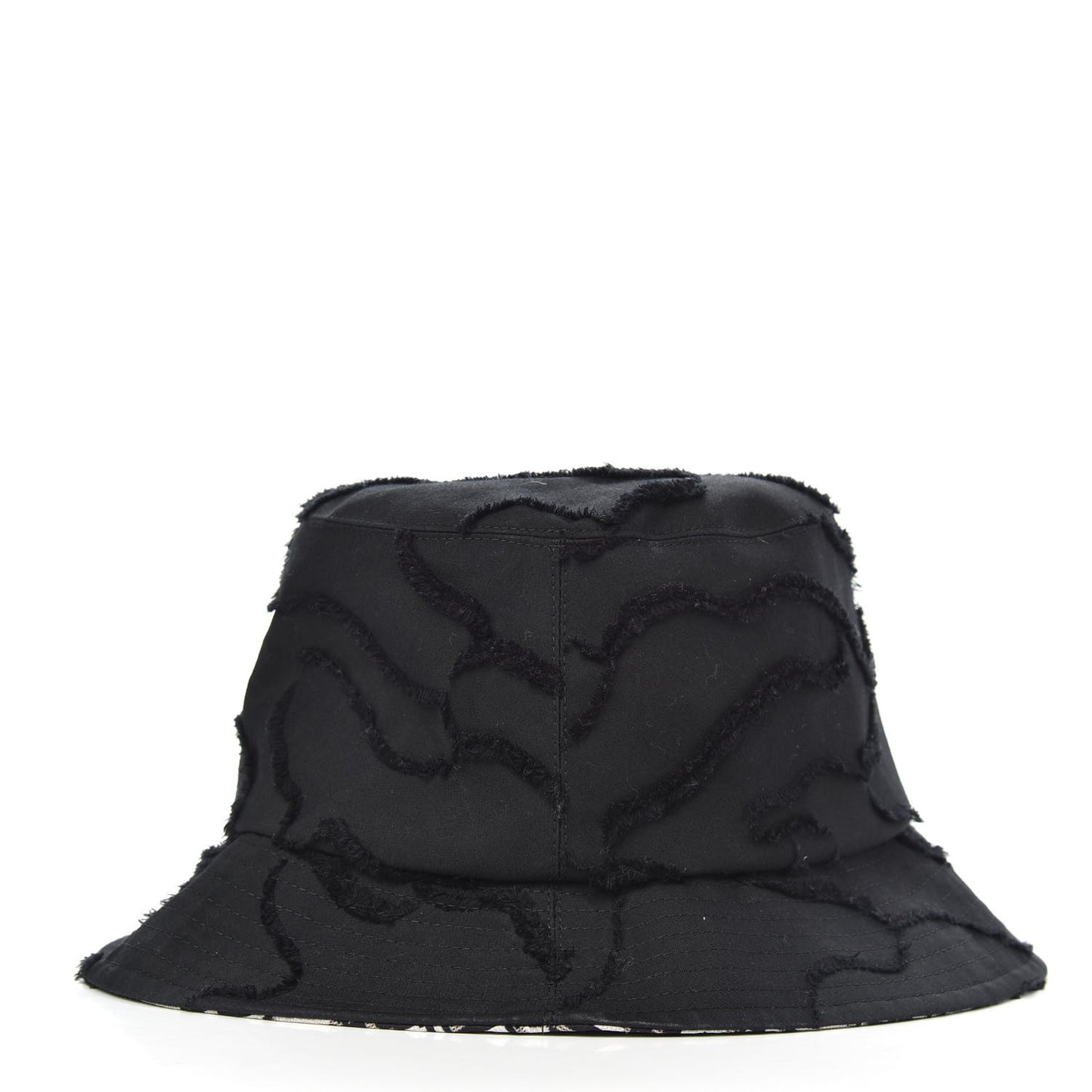 This is an authentic CHRISTIAN DIOR Camouflage Logo Bucket Hat size 58 in Black. This ultra chic bucket hat is crafted of black fabric with embroidered detail at the exterior, and Dior oblique monogram canvas at the underside of the brim.Follow this item for alerts. Christian Dior is a registered trademark of Christian Dior. FASHIONPHILE is not affiliated with Christian Dior.