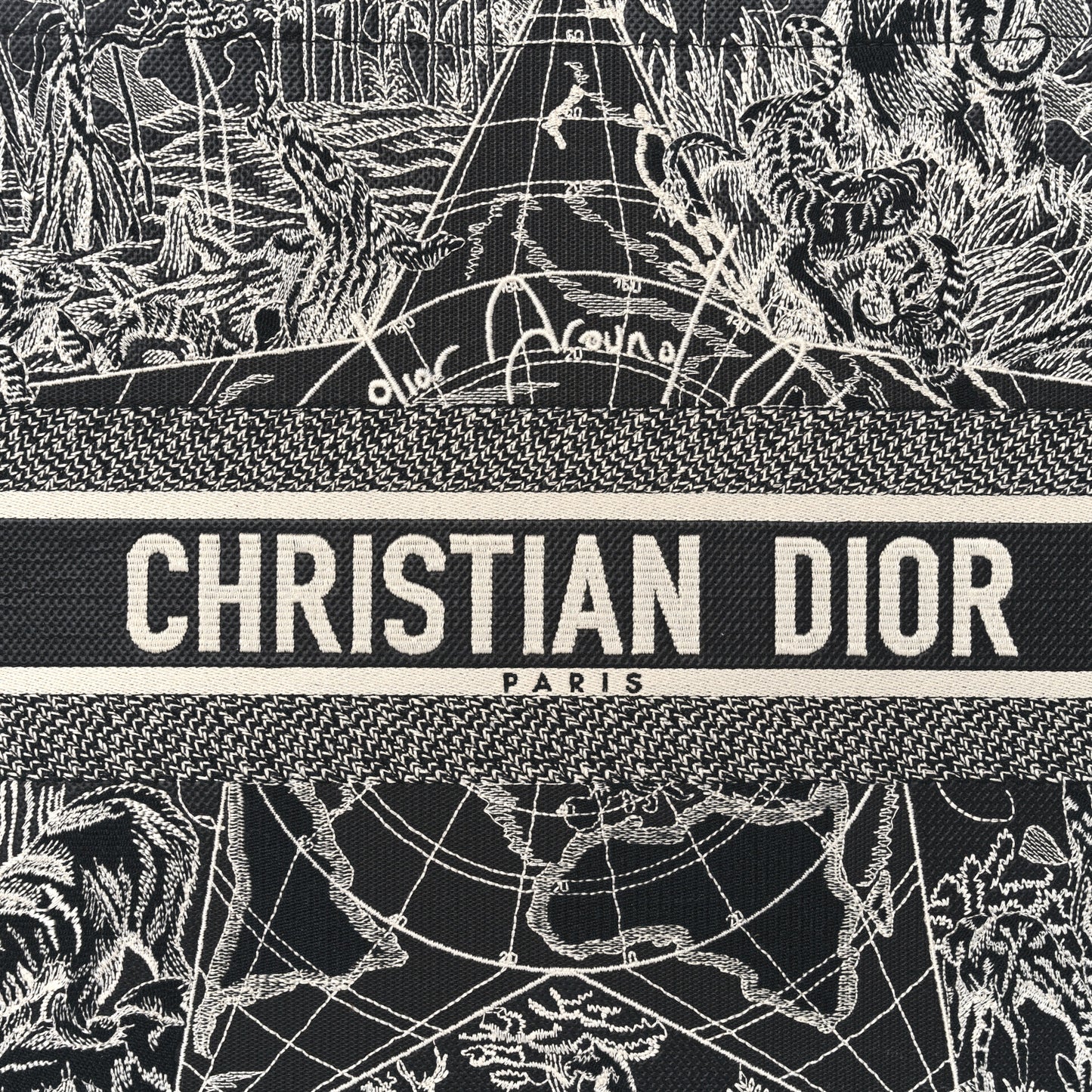 Christian Dior/ Bags/ Travel & Luggage /Christian Dior Canvas Embroidered Large Around The World Book Tote Black White
