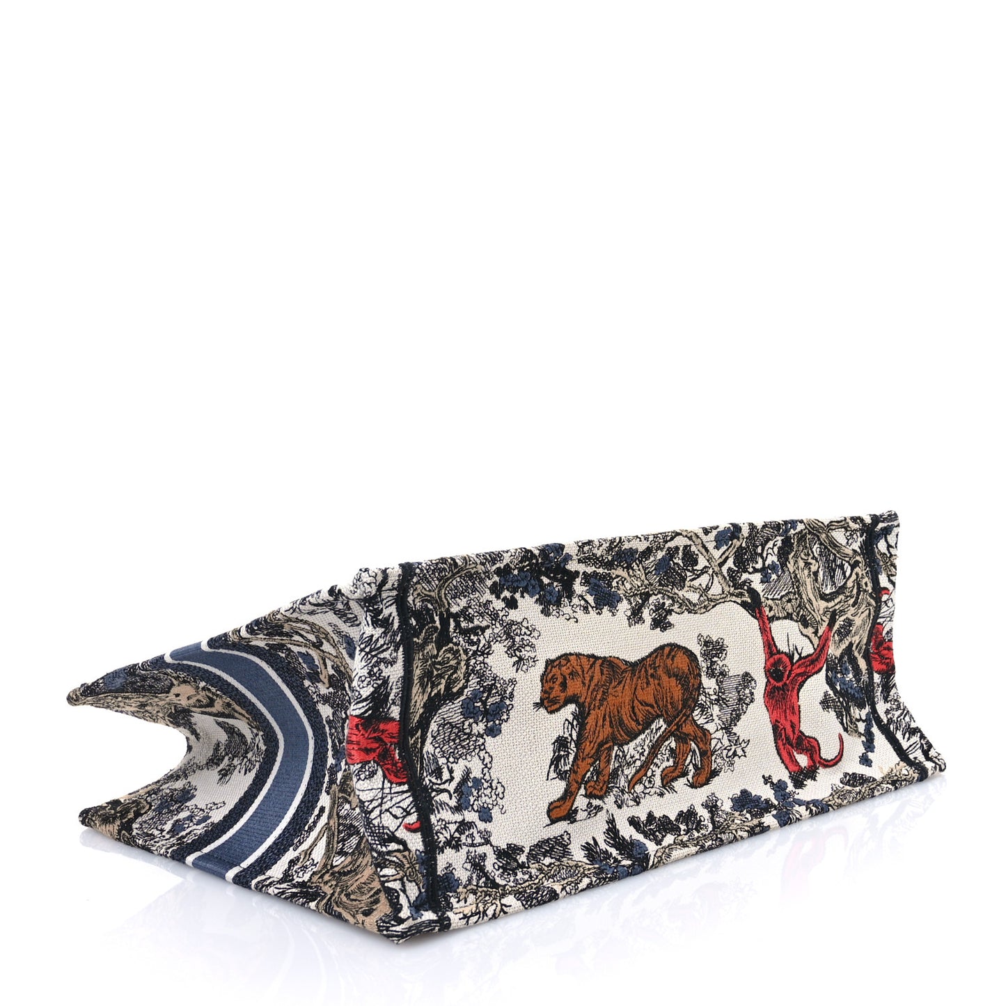 This is an authentic CHRISTIAN DIOR Canvas Embroidered Large Dioriviera Toile De Jouy Book Tote in Multicolor. This colorful tote is finely crafted of embroidered canvas with a bold jungle graphics. The bag features matching canvas rolled handles, with the CHRISTIAN DIOR logo embroidered across the front. The top is open to a spacious fabric interior.Follow this item for alerts. Christian Dior is a registered trademark of Christian Dior. FASHIONPHILE is not affiliated with Christian Dior.