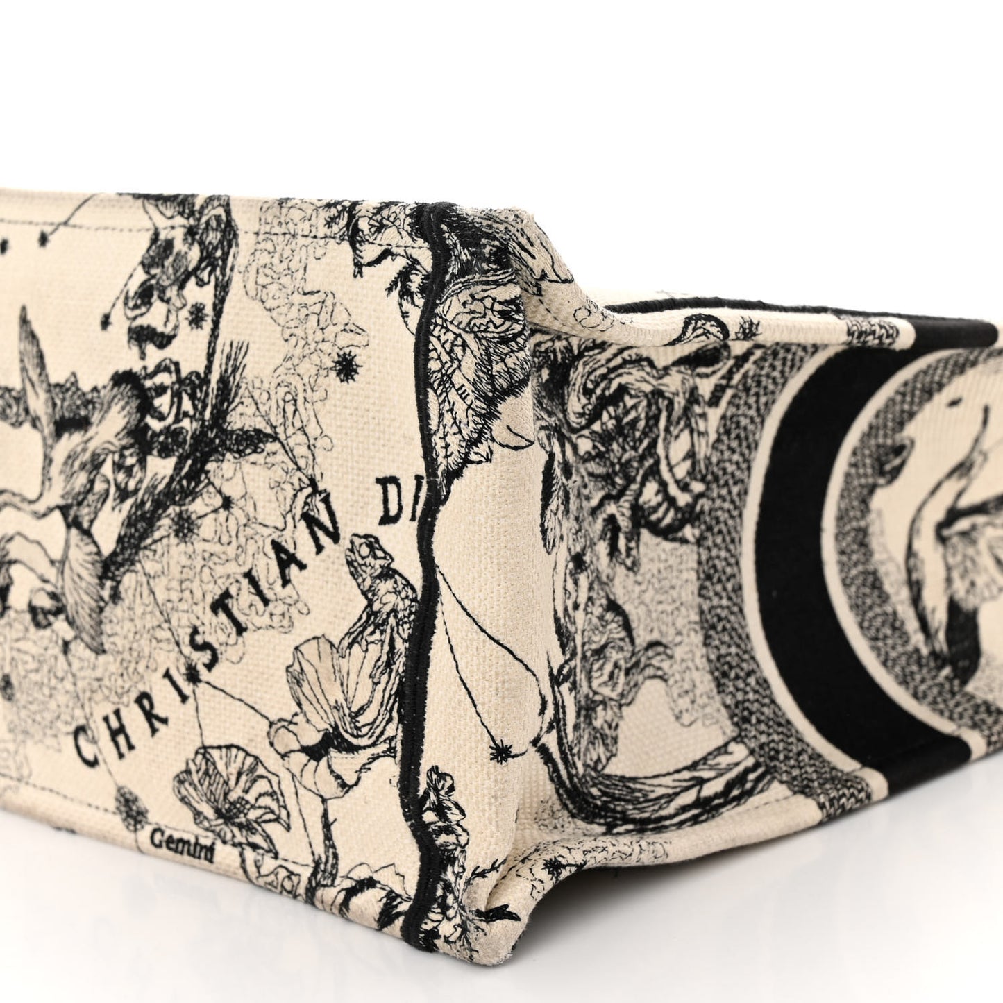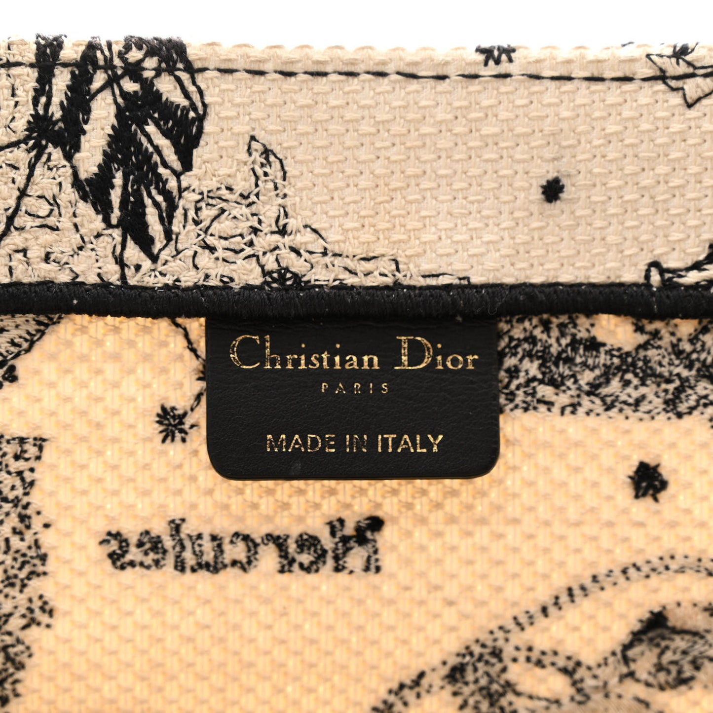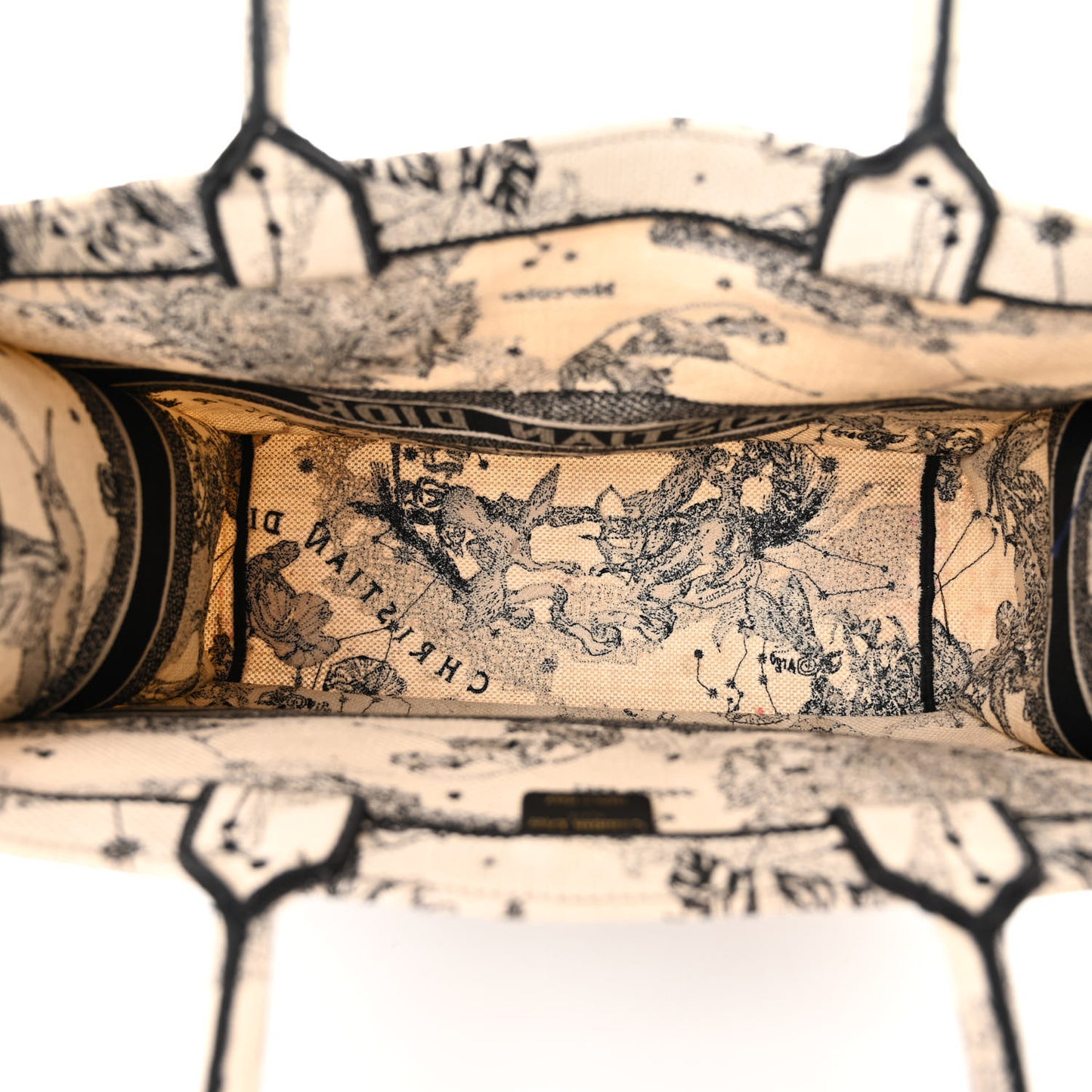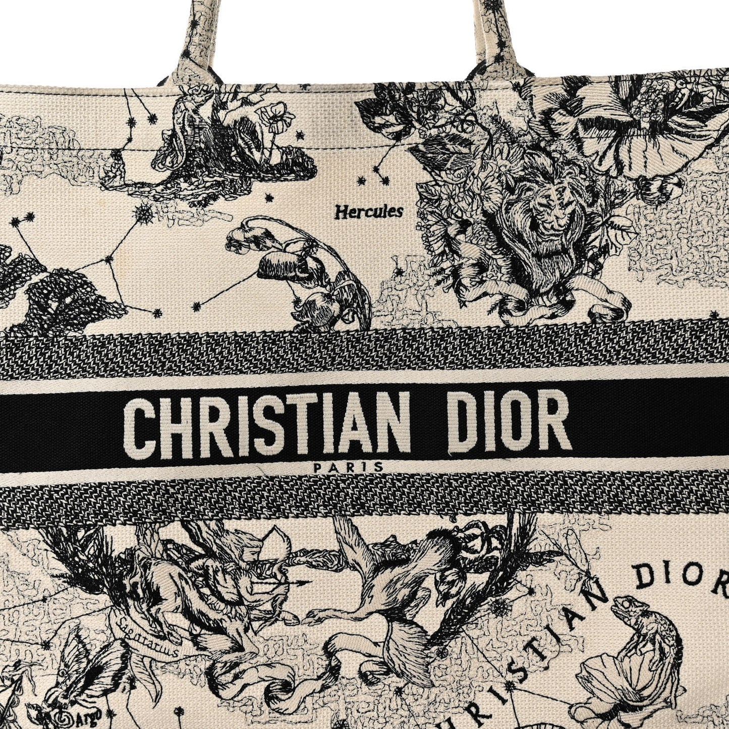 This is an authentic CHRISTIAN DIOR Canvas Embroidered Large Zodiac Toile De Jouy Book Tote in Latte. This tote is finely crafted of embroidered canvas with a bold yet intricate design. The bag features matching canvas rolled handles and the CHRISTIAN DIOR logo embroidered across the front. The bag opens to a spacious fabric interior.Follow this item for alerts. Christian Dior is a registered trademark of Christian Dior. FASHIONPHILE is not affiliated with Christian Dior.