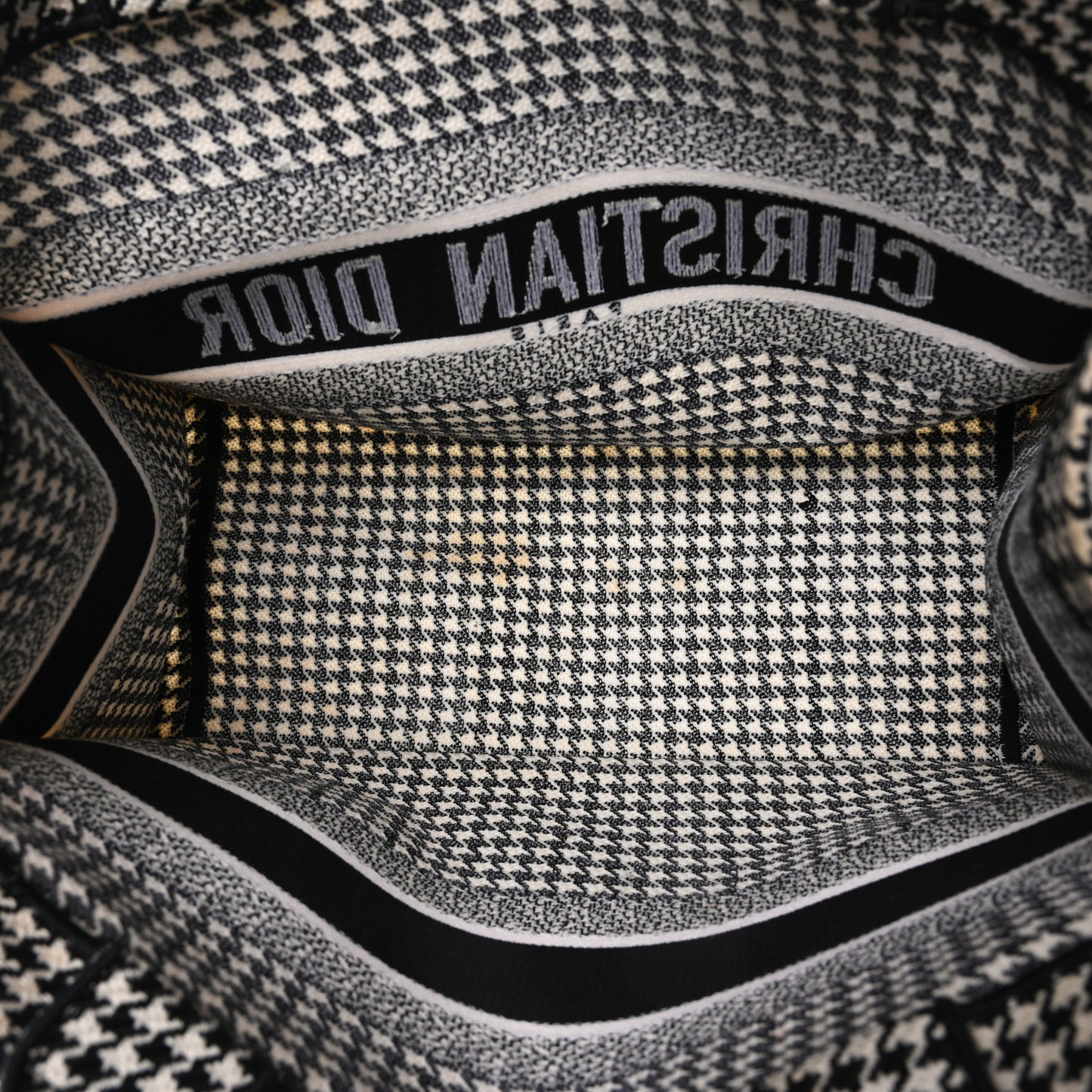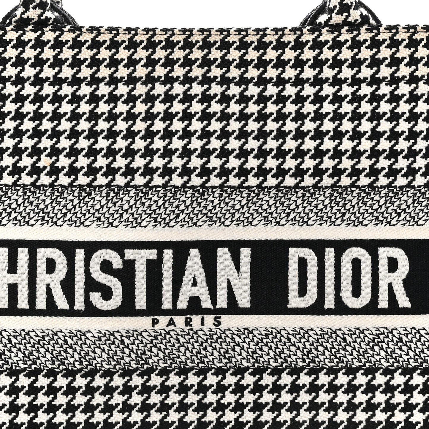 Christian Dior/ Bags/ Totes /Christian Dior Canvas Houndstooth Embroidered Medium Book Tote Black White