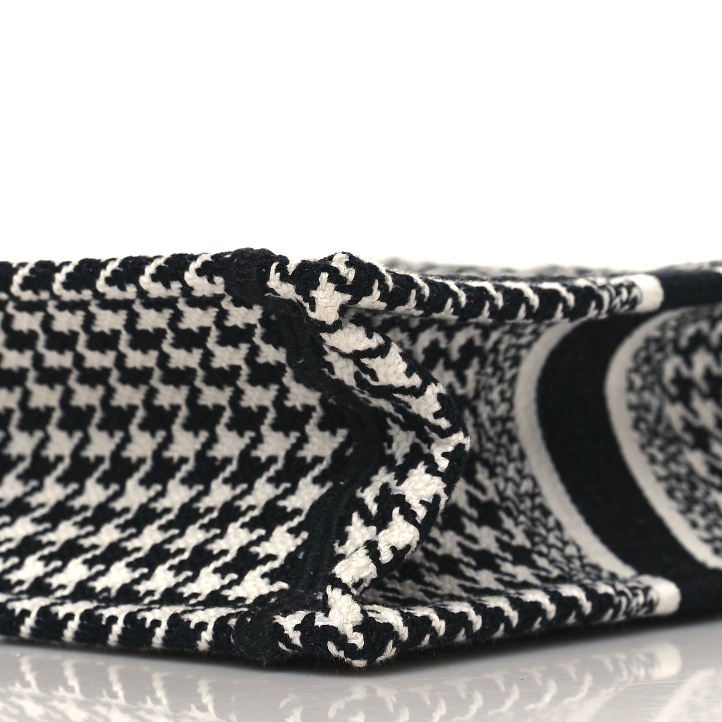 This is an authentic CHRISTIAN DIOR Canvas Houndstooth Embroidered Mini Book Tote Phone Bag in Black and White. This petite tote is finely crafted of embroidered canvas with a houndstooth pattern in black and white. The bag features matching rolled canvas handles, an optional shoulder strap, and a CHRISTIAN DIOR logo embroidered across the front. The bag opens to a compact unlined fabric interior.Follow this item for alerts. Christian Dior is a registered trademark of Christian Dior. FASHIONPHILE is not affiliated with Christian Dior.
