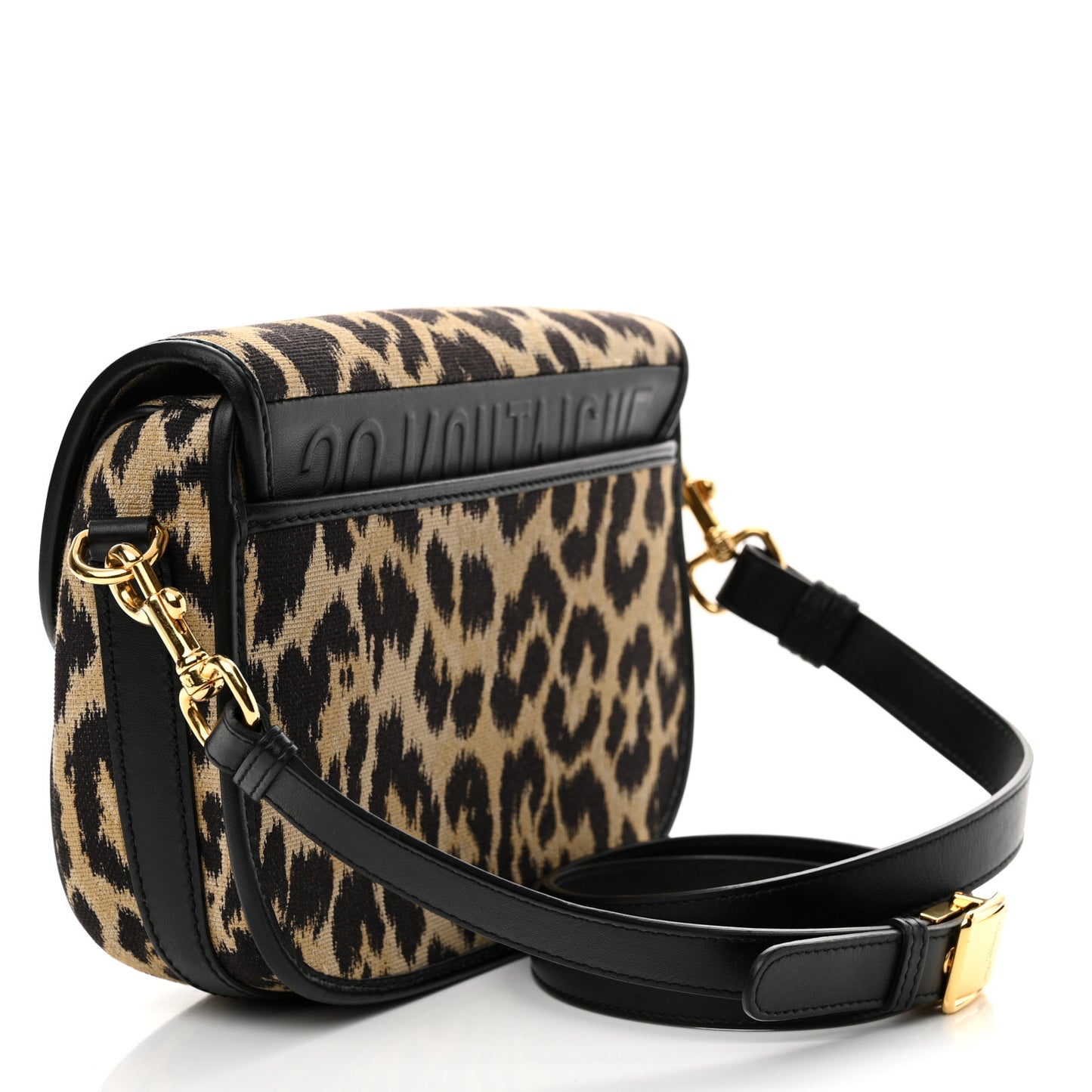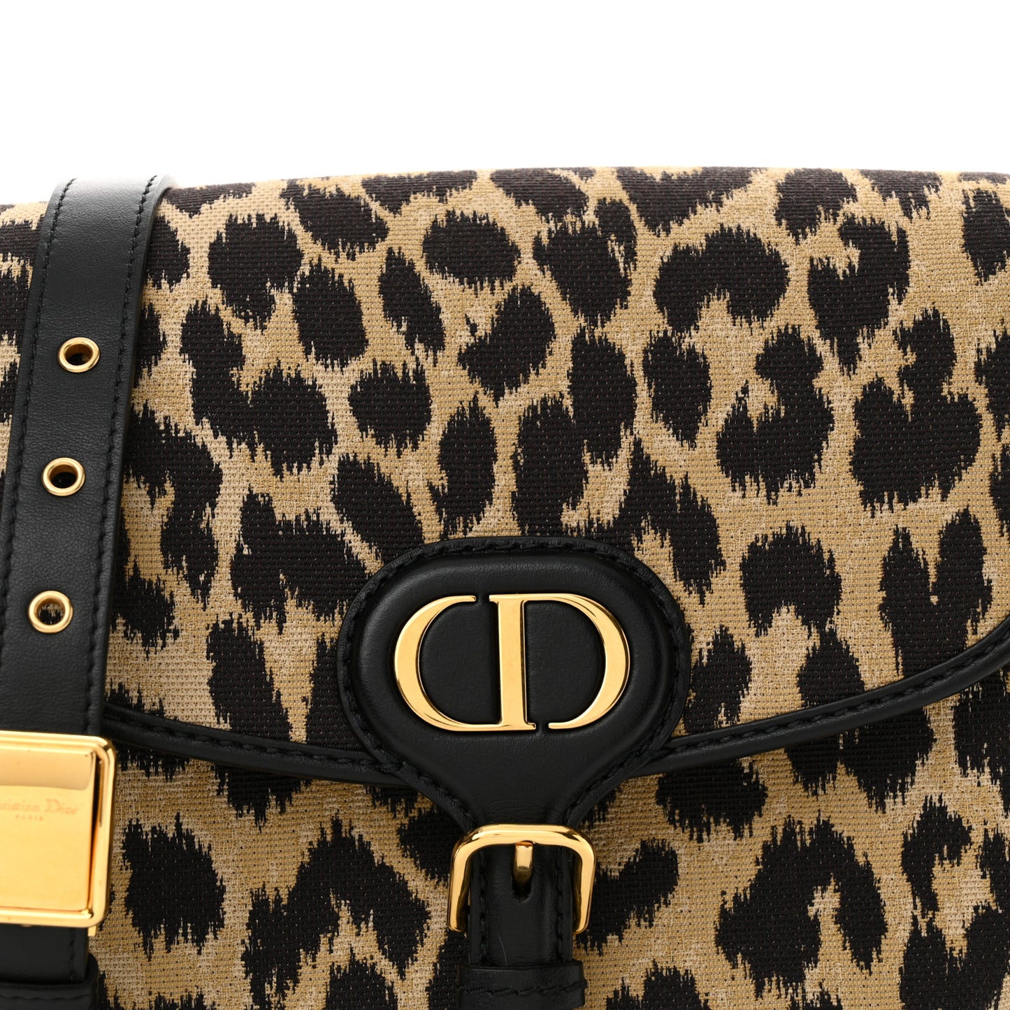 This is an authentic CHRISTIAN DIOR Canvas Mizza Embroidered Medium Bobby Flap in Beige and Multicolor. This flap bag is finely crafted of cheetah print canvas, with black leather trim. The bag features a black leather shoulder strap, a rear pocket, a magnetic clasp and polished gold hardware. The flap opens to a black fabric interior with a leather patch pocket.