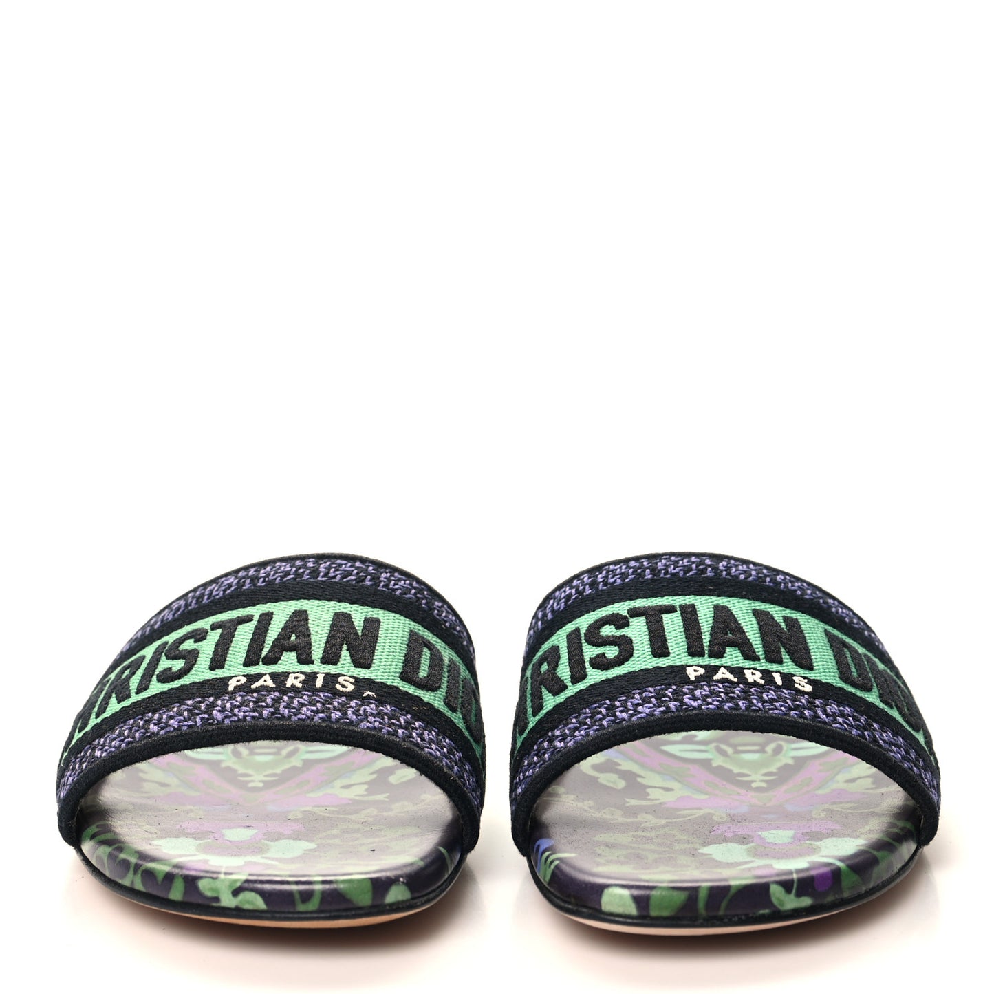 Christian Dior/ Accessories/ Shoes /Christian Dior Canvas Toile de Jouy Voyage Embroidered Dway Flat Slide Sandals 36 Purple Multicolor