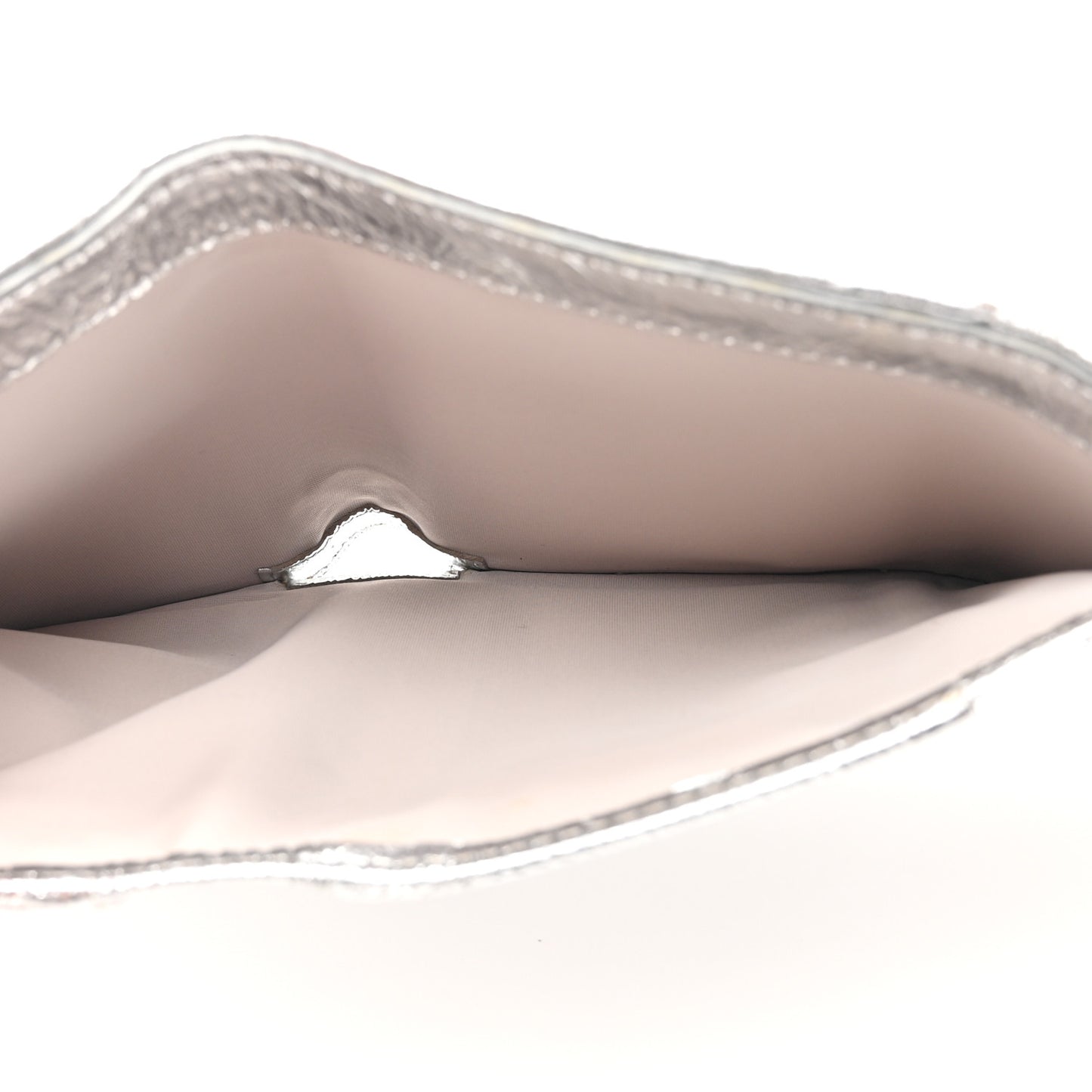 This is an authentic CHRISTIAN DIOR Ceramic Effect Cannage Diorama Elancee Wallet in Silver. This stylish, compact wallet is crafted of ceramic effect metallic silver leather with prominent geometric ribbing. The wallet features a rear zipper pocket and a facing flap, detailed with a silver faux press-lock. The wallet snaps open to a silver leather interior with card slots, a billfold, and patch pockets. This is the perfect head-turning wallet with plenty of room for daytime or evening essentials, from Christian Dior!Follow this item for alerts. Christian Dior is a registered trademark of Christian Dior. FASHIONPHILE is not affiliated with Christian Dior.