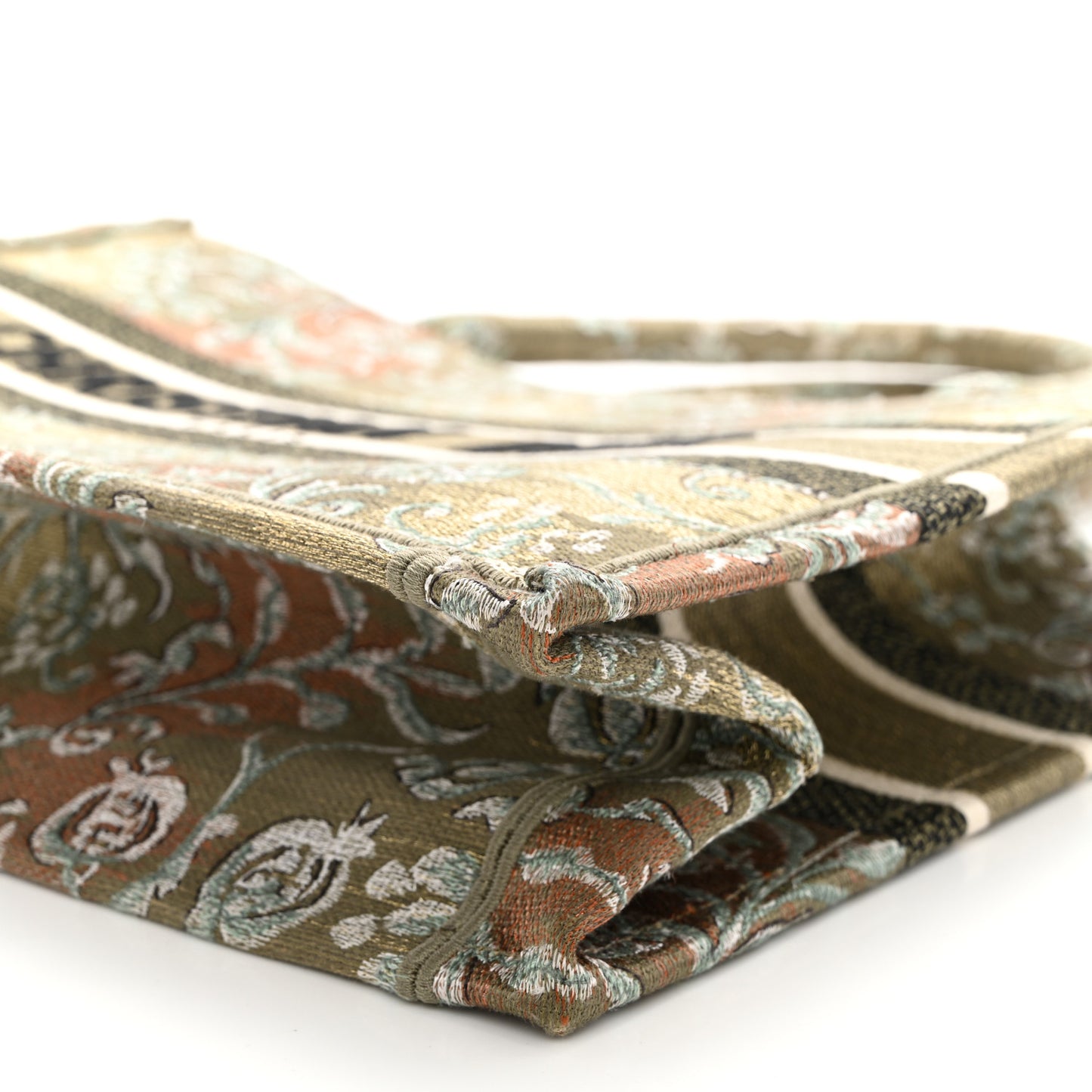 CHRISTIAN DIOR Canvas Embroidered Medium Brocart Book Tote Metallic Green