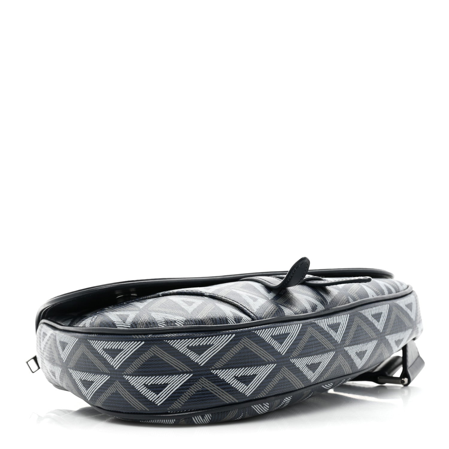 Coated Canvas Calfskin CD Diamond Mens Saddle Bag Navy