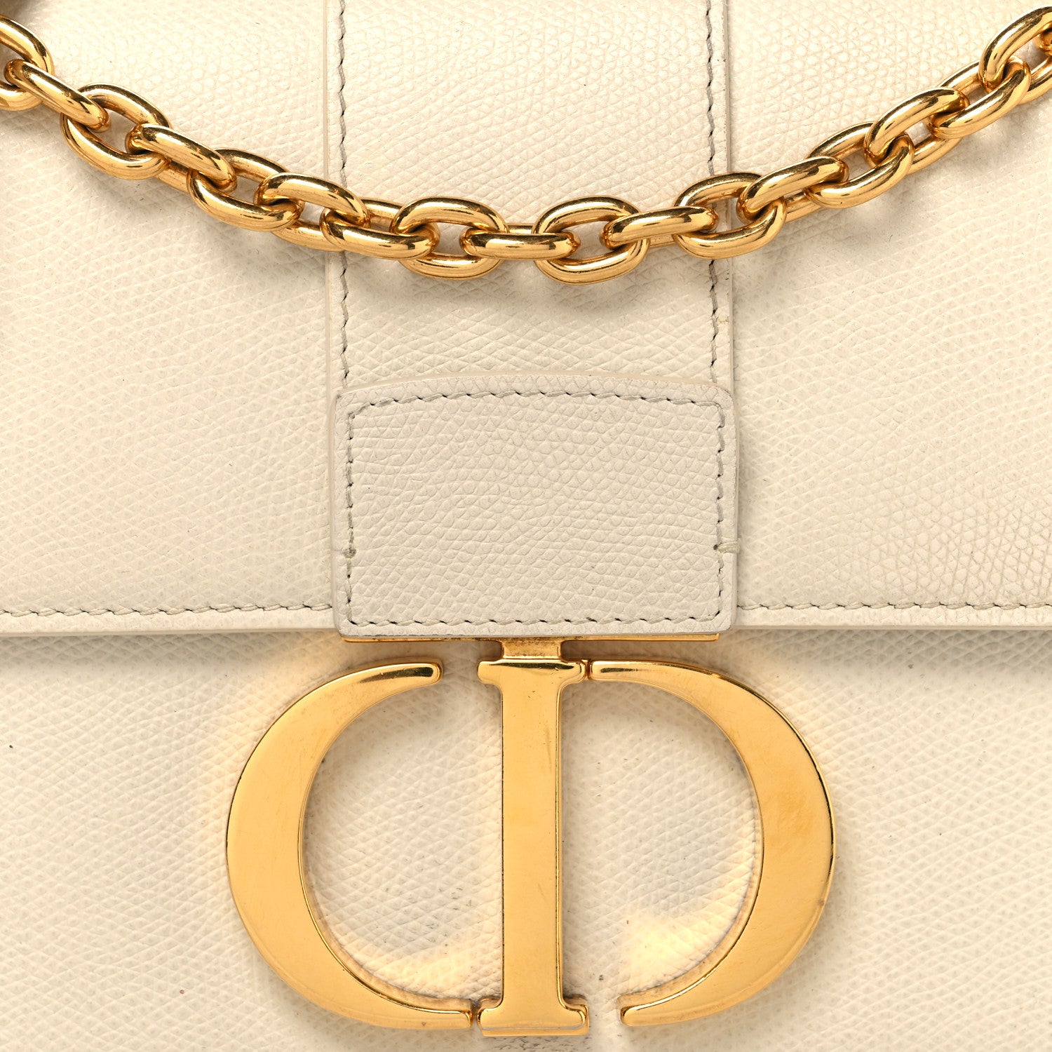 Christian Dior/ Bags/ Shoulder Bags /Christian Dior Grained Calfskin 30 Montaigne East West Chain Flap Bag Off White