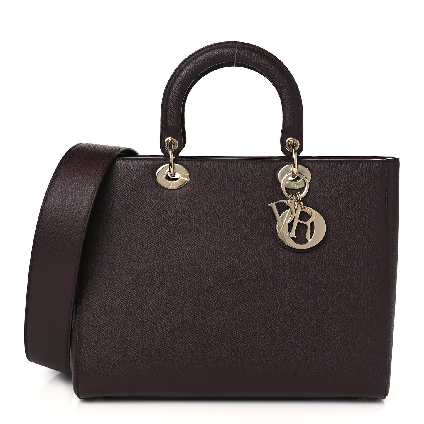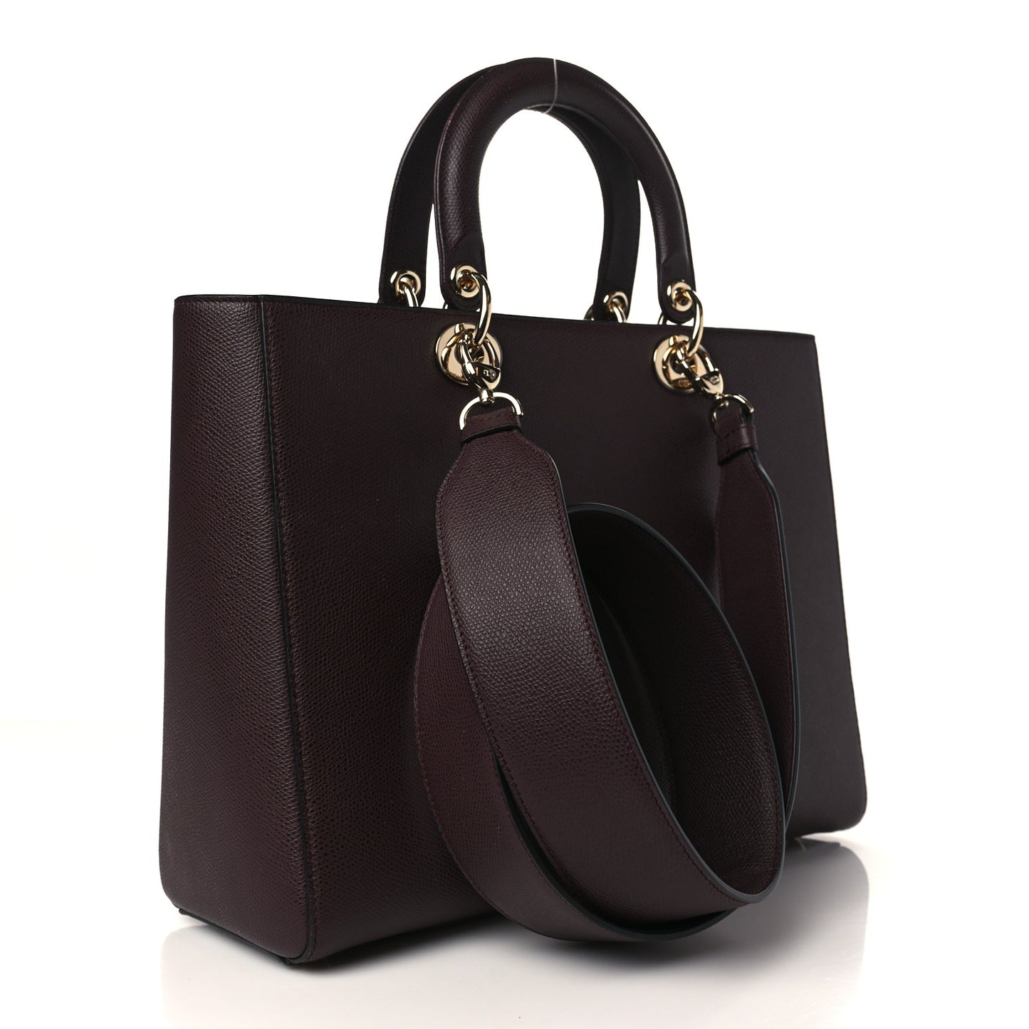 This is an authentic CHRISTIAN DIOR Grained Calfskin Large Lady Dior Burgundy. This popular tote is crafted of grained calfskin leather in a classic burgundy. The tote bag features leather top handles with light gold hardware including Dior initials charms. The top opens to a matching suede interior with a zip pocket and patch pockets.Follow this item for alerts. Christian Dior is a registered trademark of Christian Dior. FASHIONPHILE is not affiliated with Christian Dior.