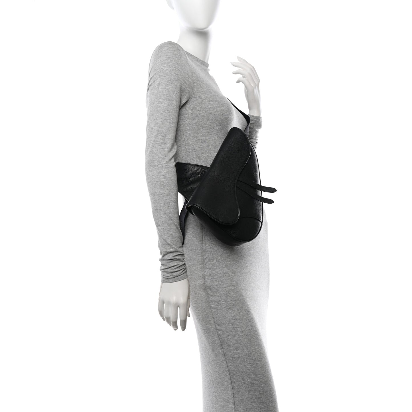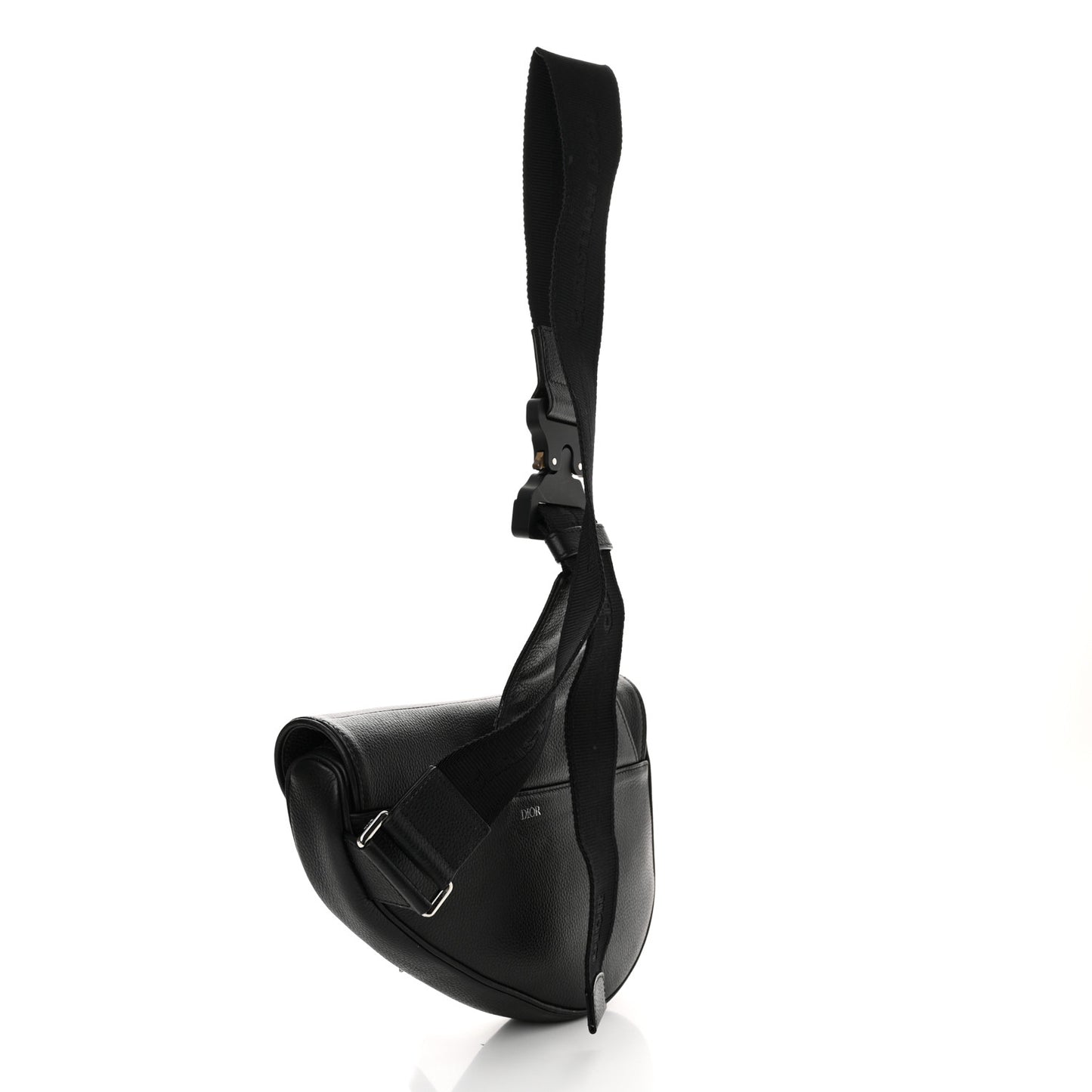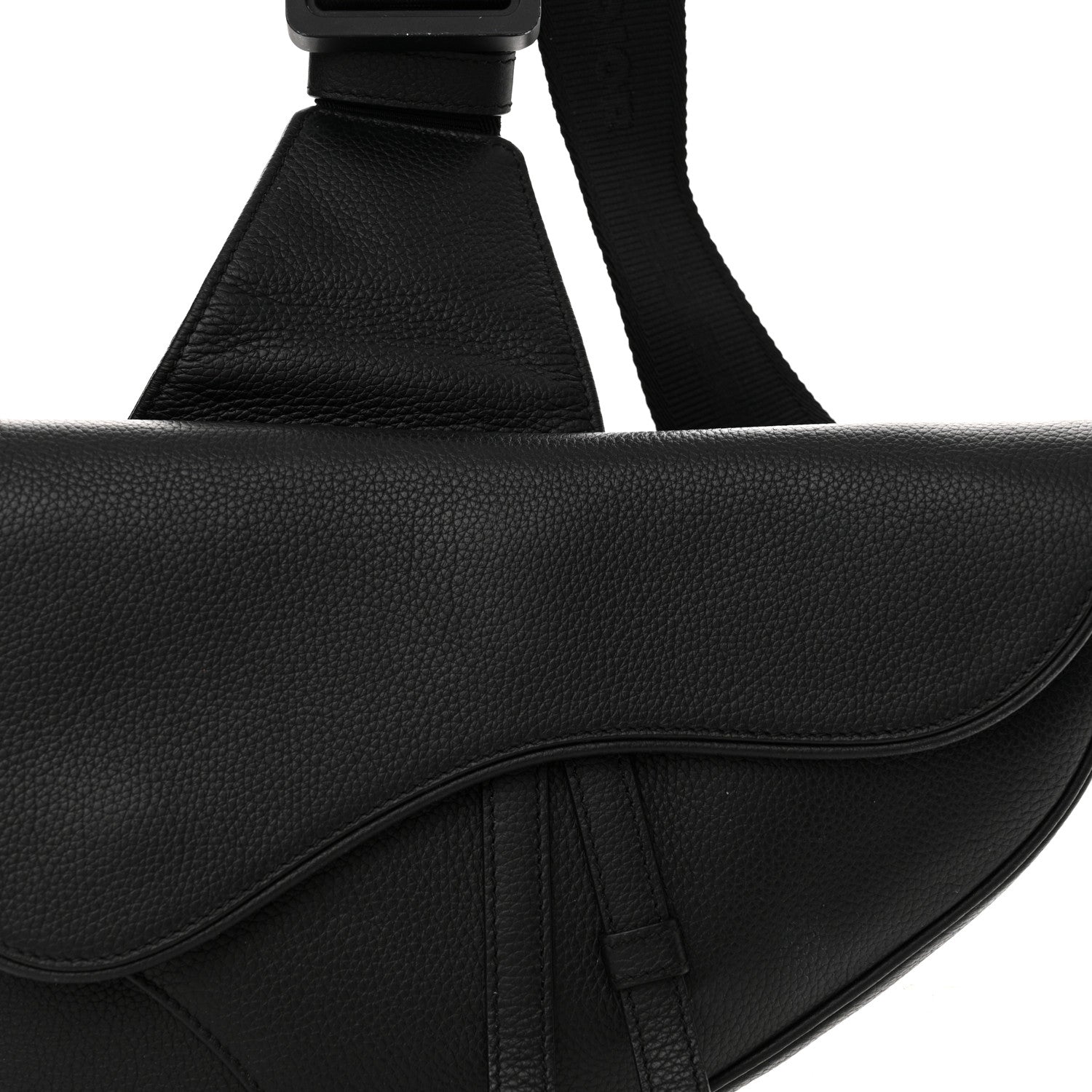 This is an authentic CHRISTIAN DIOR Grained Calfskin Mens Mini Saddle Bag in Black. This bag is crafted in black leather and features the saddle bag shape, a removable, adjustable nylon jacquard shoulder strap that can be worn at the waist, over the shoulder or as a crossbody. The bag opens to a black fabric interior.Follow this item for alerts. Christian Dior is a registered trademark of Christian Dior. FASHIONPHILE is not affiliated with Christian Dior.