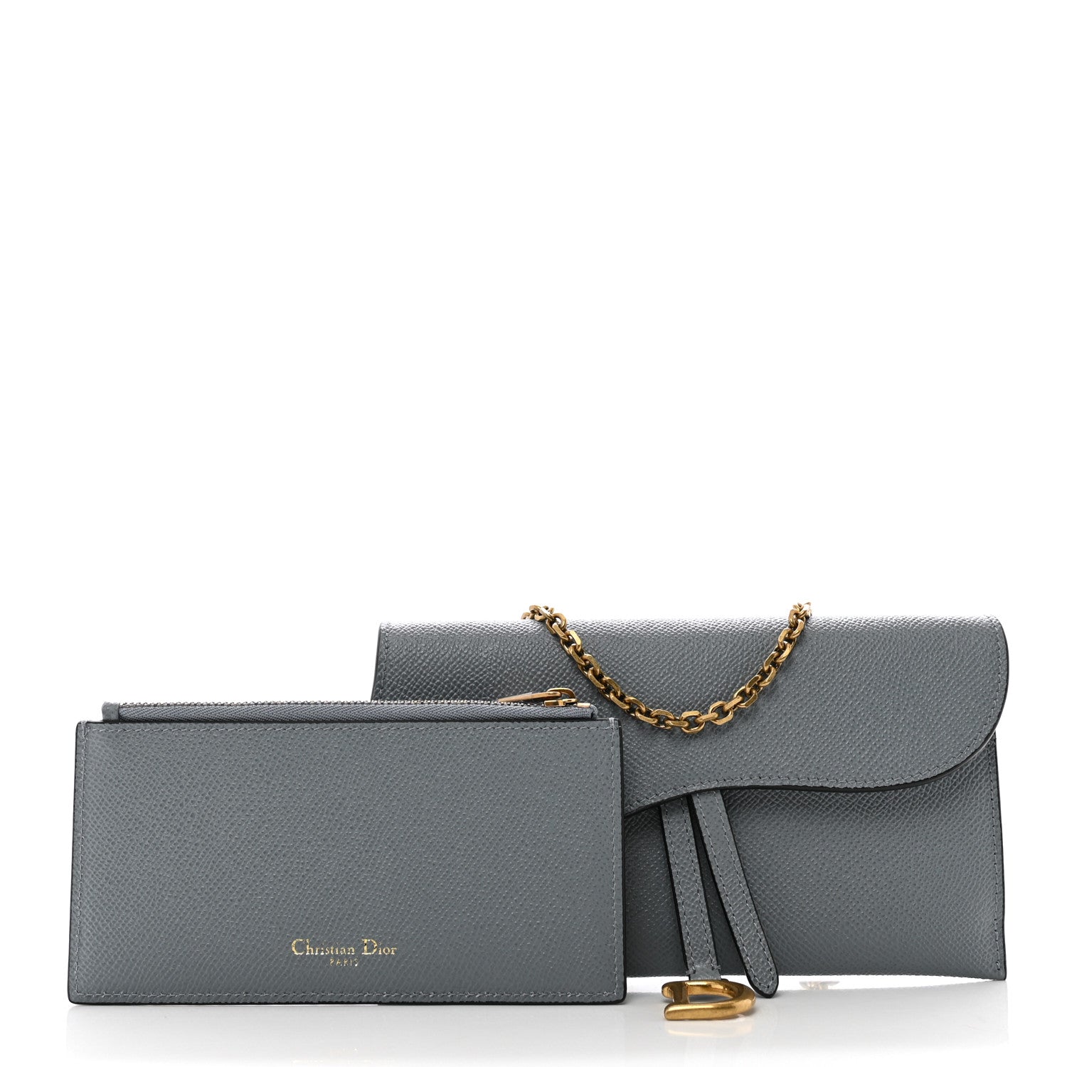 Christian Dior/ Bags/ Wallet Style /Christian Dior Grained Calfskin Saddle Chain Pouch Cloud Blue