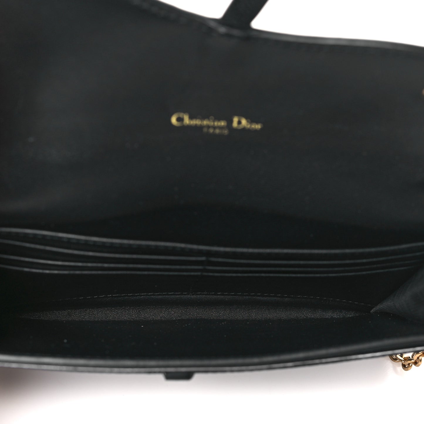 Christian Dior/ Bags/ Wallet Style /Christian Dior Grained Calfskin Saddle Chain Wallet Pouch Black