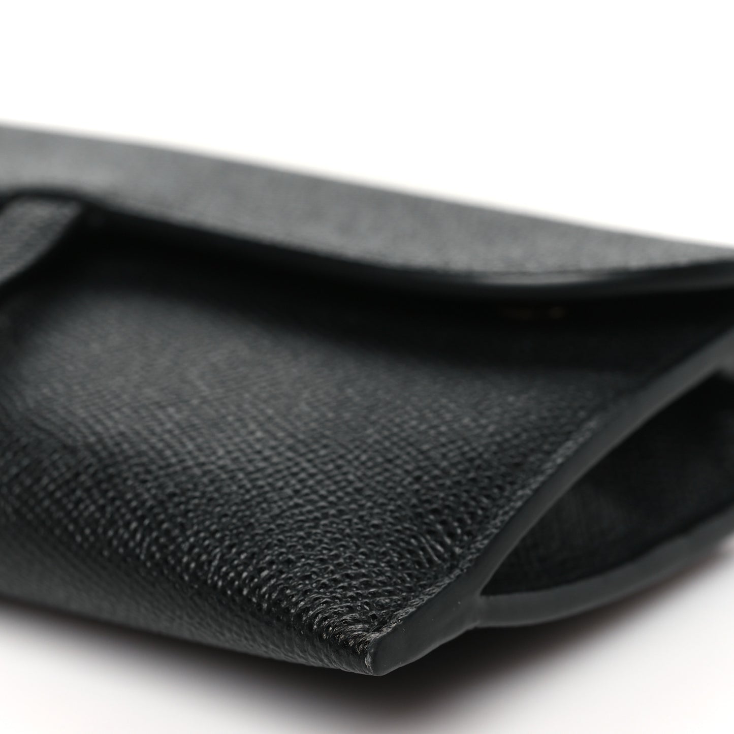 Grained Calfskin Saddle Chain Wallet Pouch Black