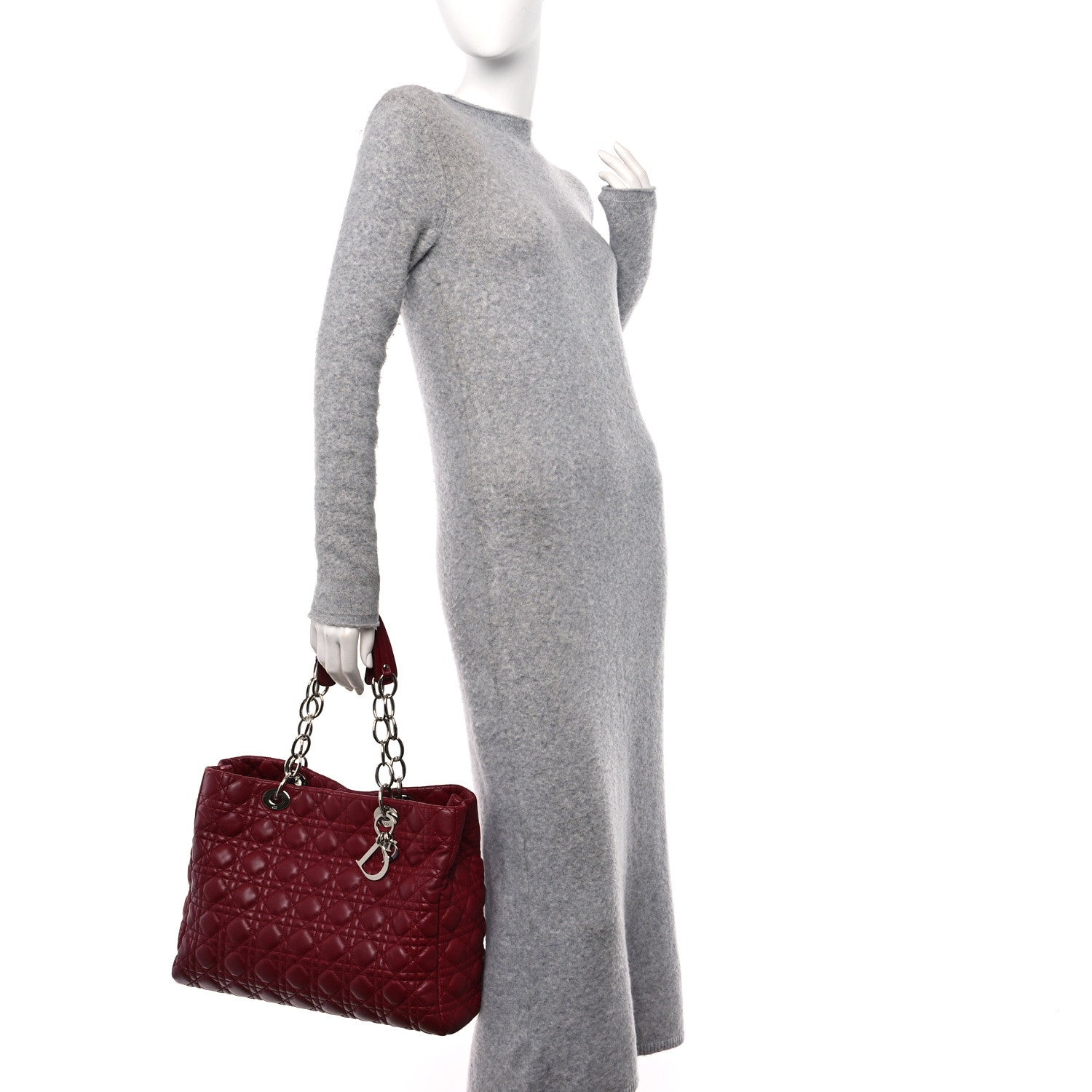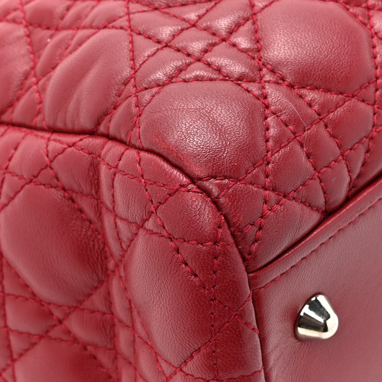 This is an authentic CHRISTIAN DIOR Lambskin Cannage Large Dior Soft Shopping Tote in Red. This stunning large tote is beautifully crafted of padded geometric quilted lambskin leather in red. The handbag features silver chain link shoulder straps with leather shoulder pads, and a silver signature Dior letters charm. The top is open to a partitioned grey fabric interior with zipper and patch pockets.Follow this item for alerts. Christian Dior is a registered trademark of Christian Dior. FASHIONPHILE is not affiliated with Christian Dior.