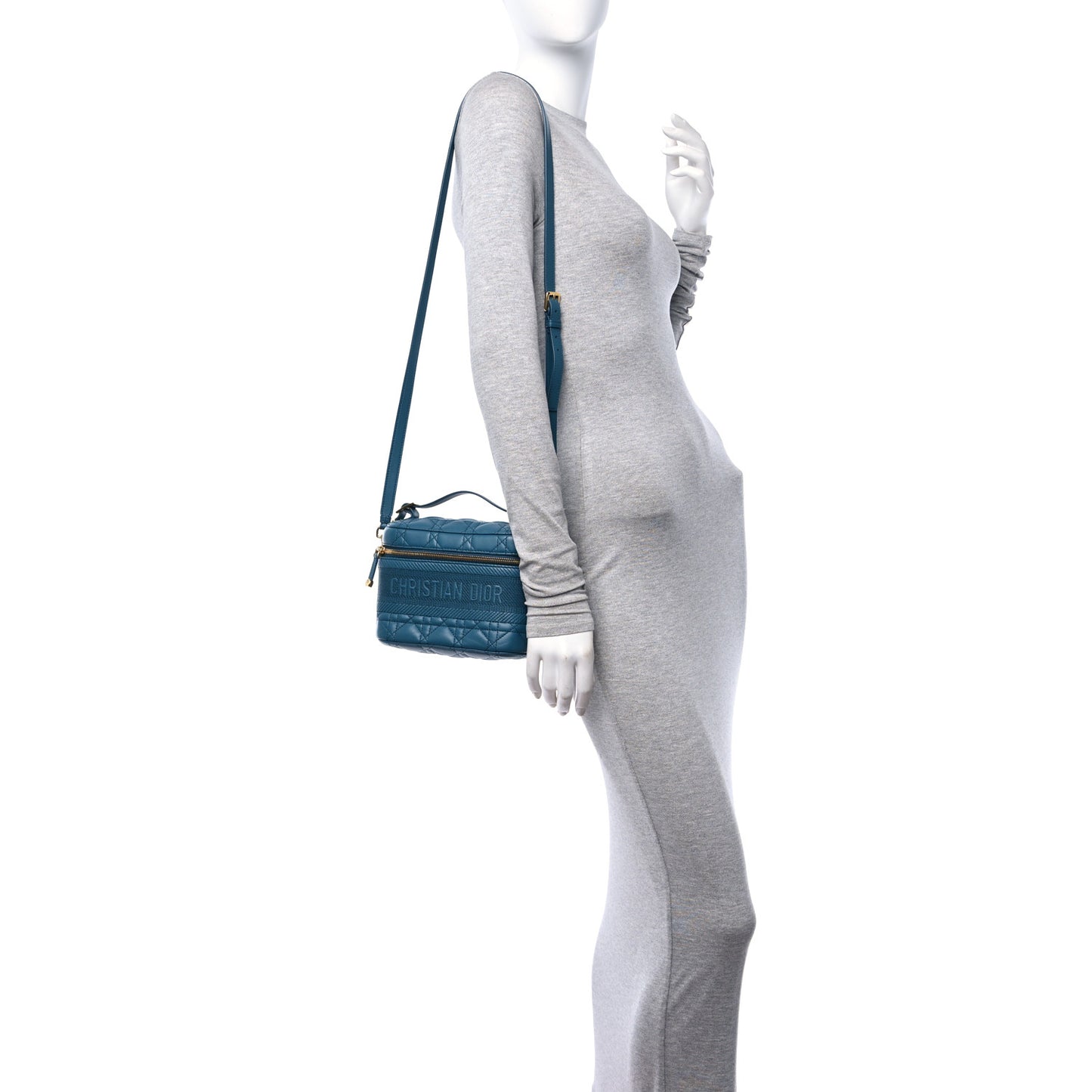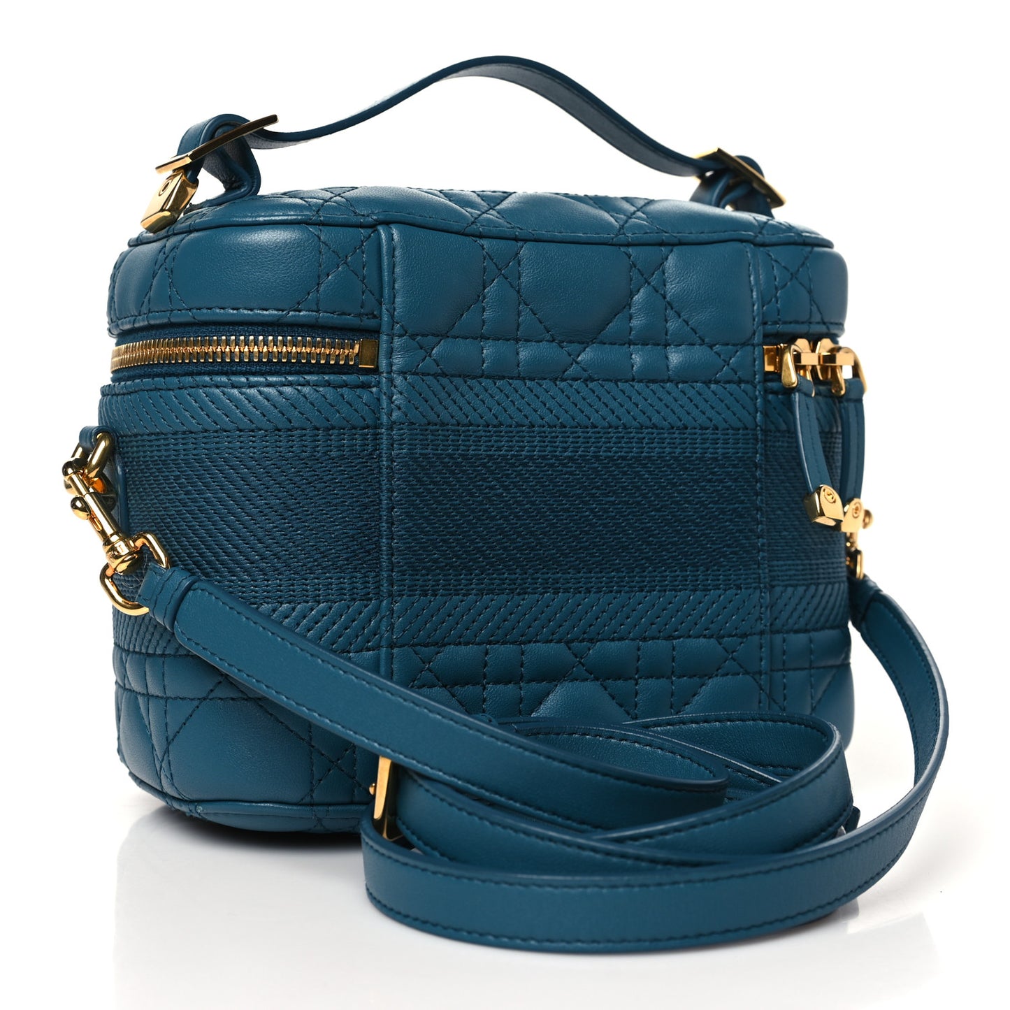 Christian Dior/ Accessories/ Crossbody /Christian Dior Lambskin Cannage Small Diortravel Vanity Case Deep Ocean