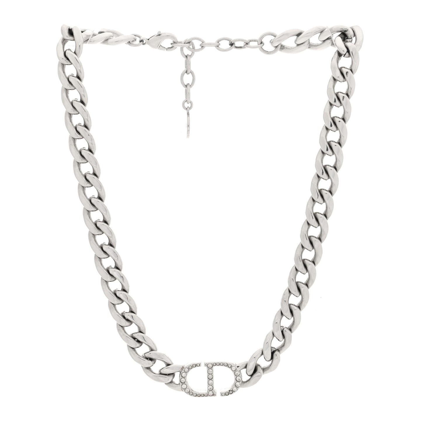 This is an authentic CHRISTIAN DIOR Metal Crystal CD Chain Link Necklace in Silver. This beautiful necklace is crafted of silver metal and features a CD Dior charm in the middle with crystals.Follow this item for alerts. Christian Dior is a registered trademark of Christian Dior. FASHIONPHILE is not affiliated with Christian Dior.